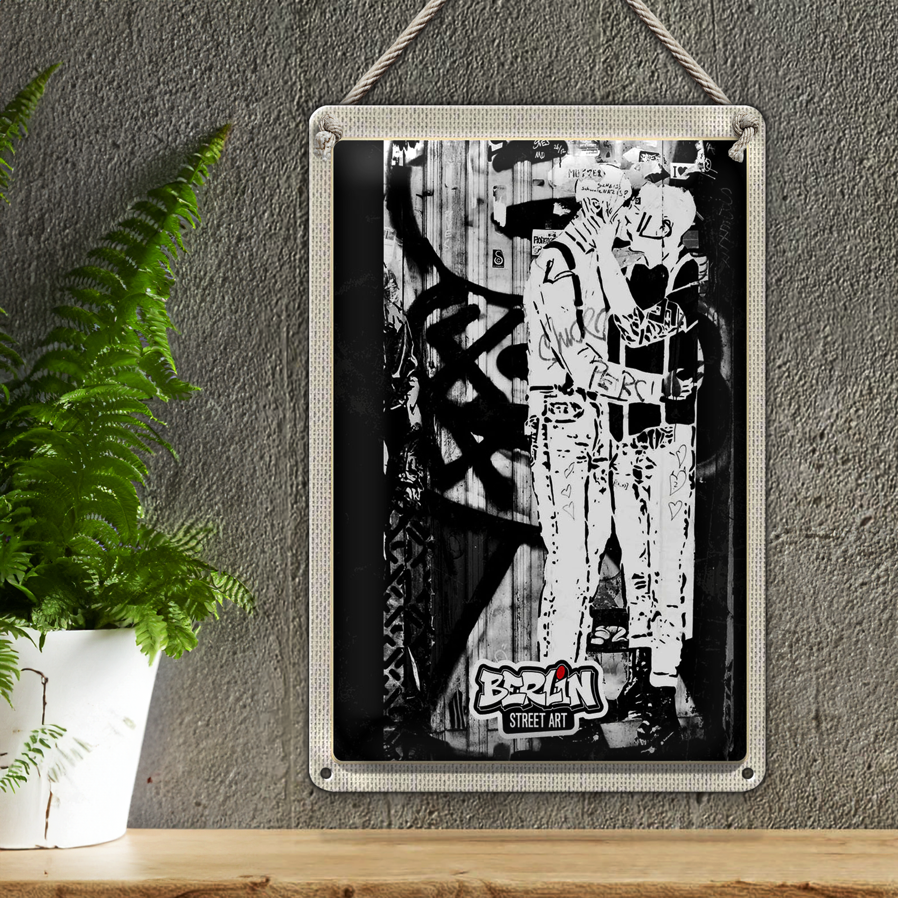 Blechschild Reise 20x30cm Berlin Deutschland Geschlecht Graffiti