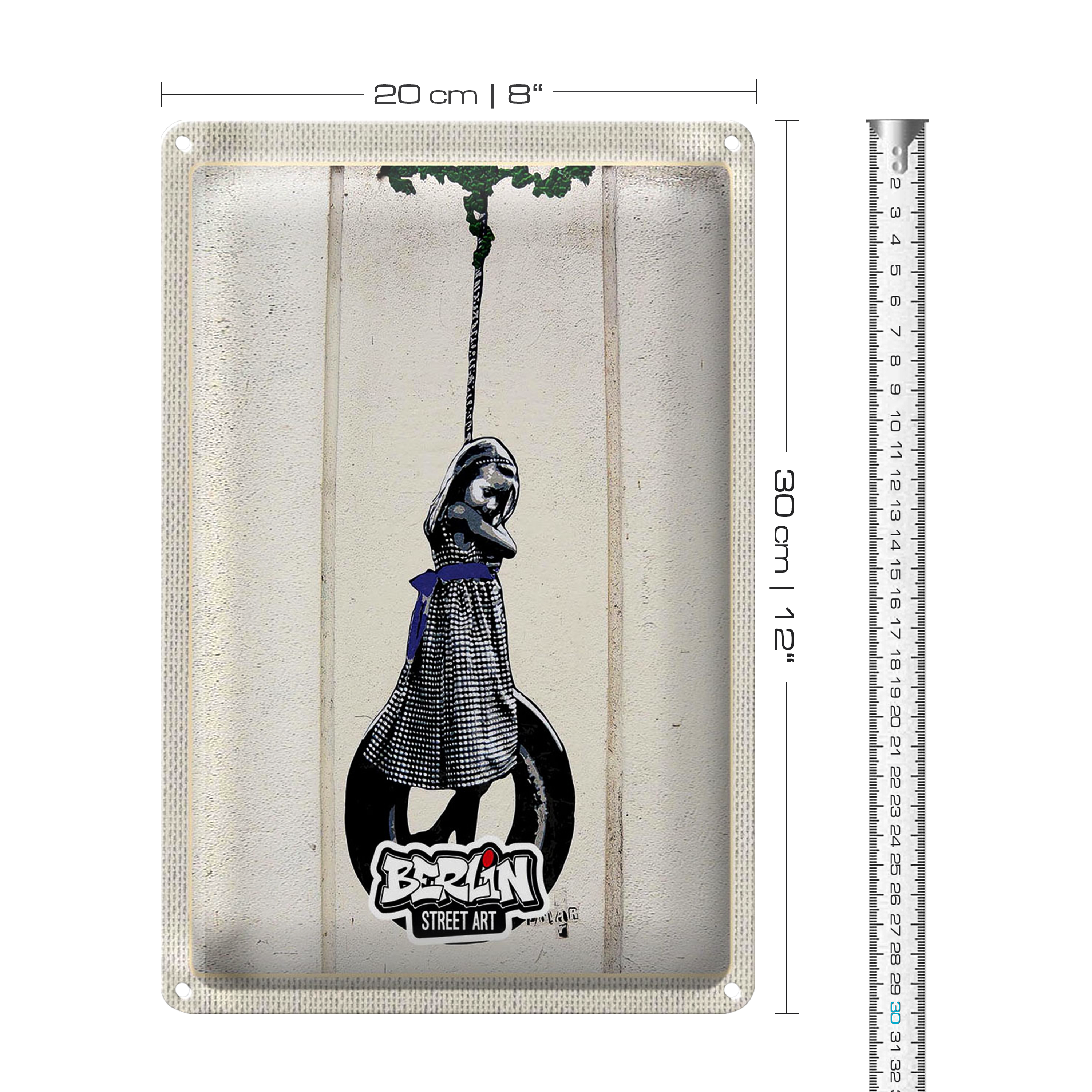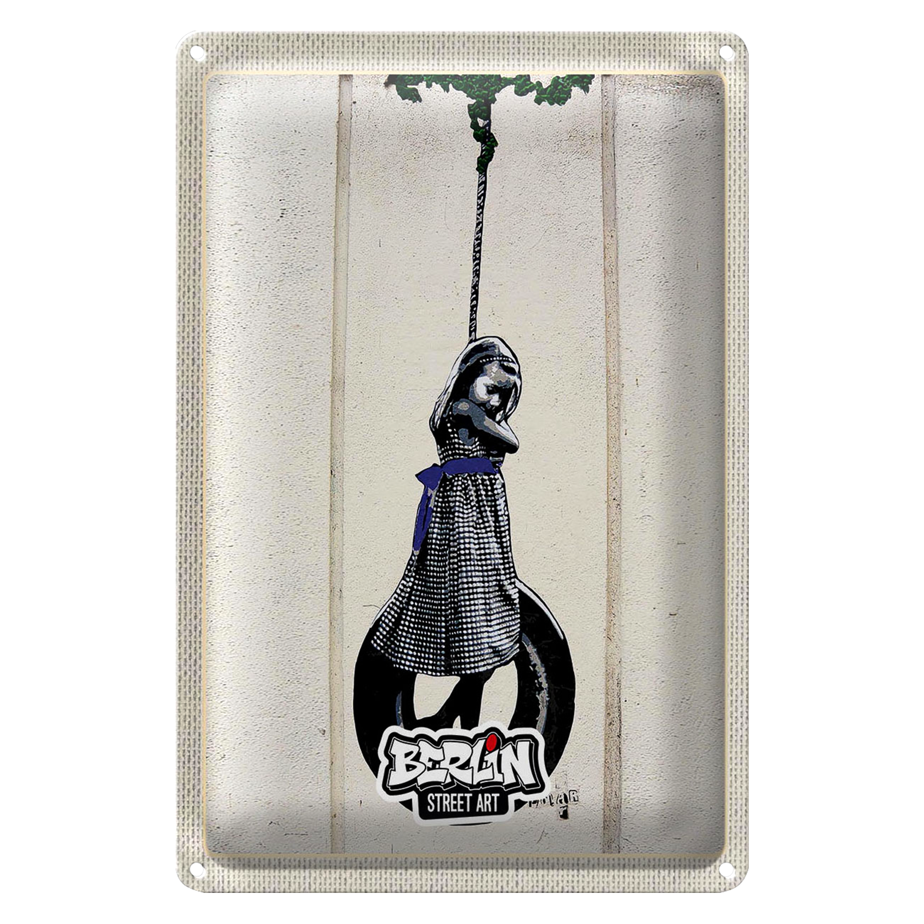 Blechschild Reise 20x30cm Berlin Street Art schwarz weiß Kunst