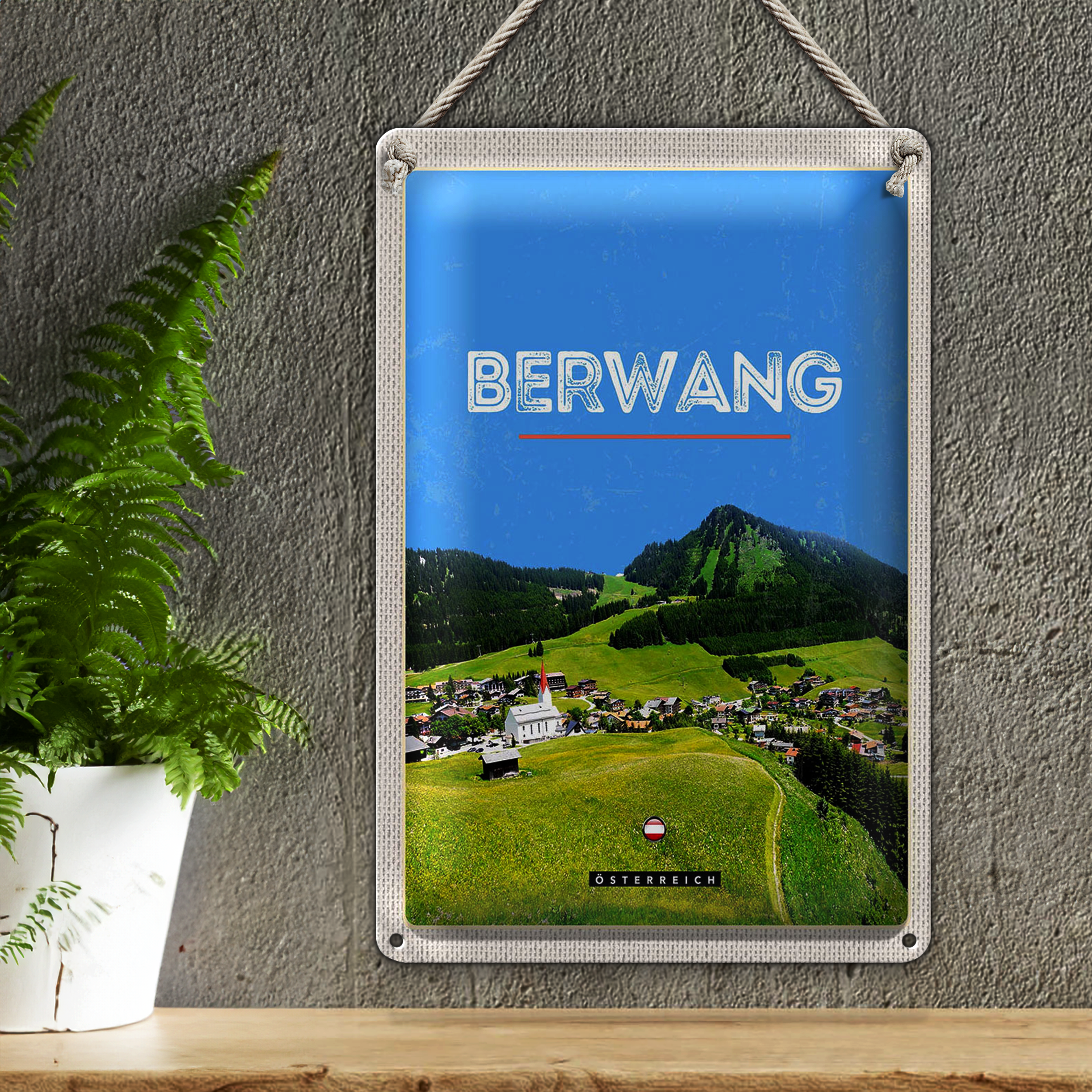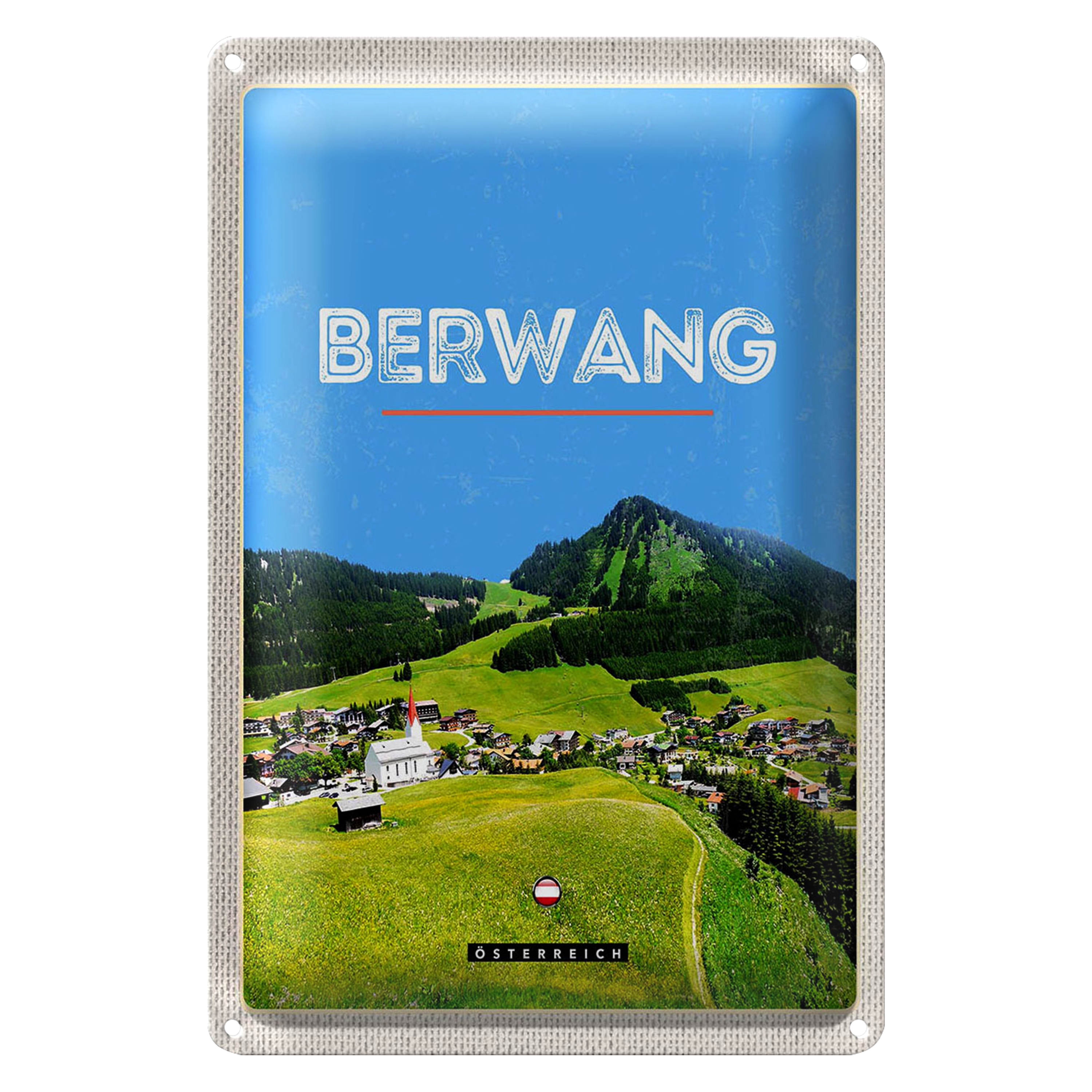 Blechschild Reise 20x30cm Berwang Österreich Weide Gebirge Natur