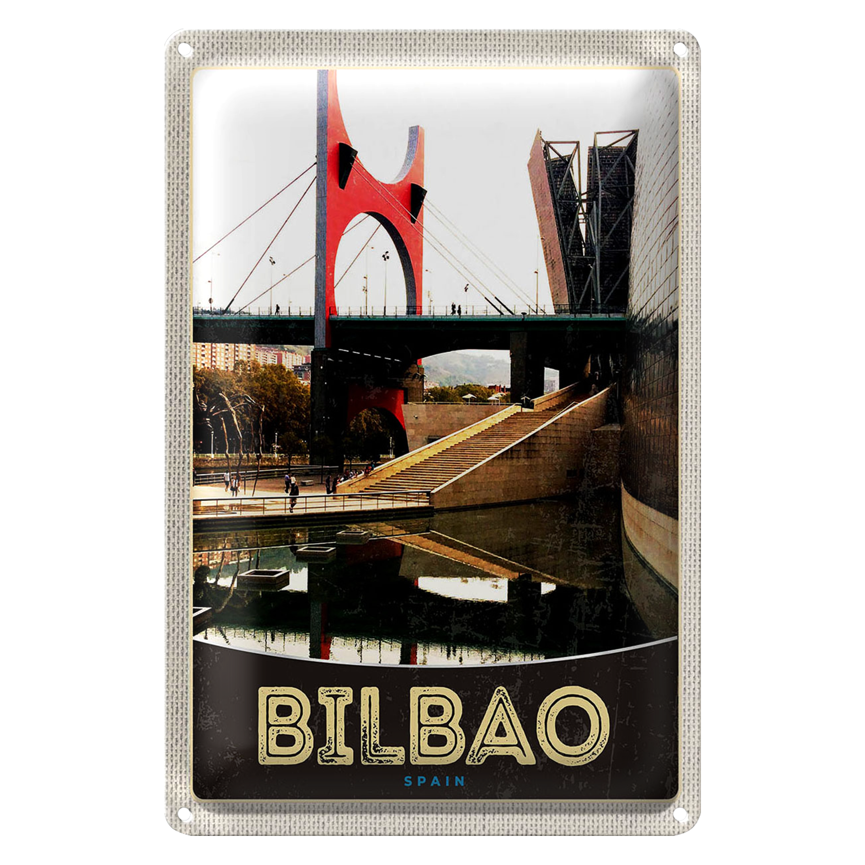 Blechschild Reise 20x30cm Bilbao Spanien Brücke Urlaub