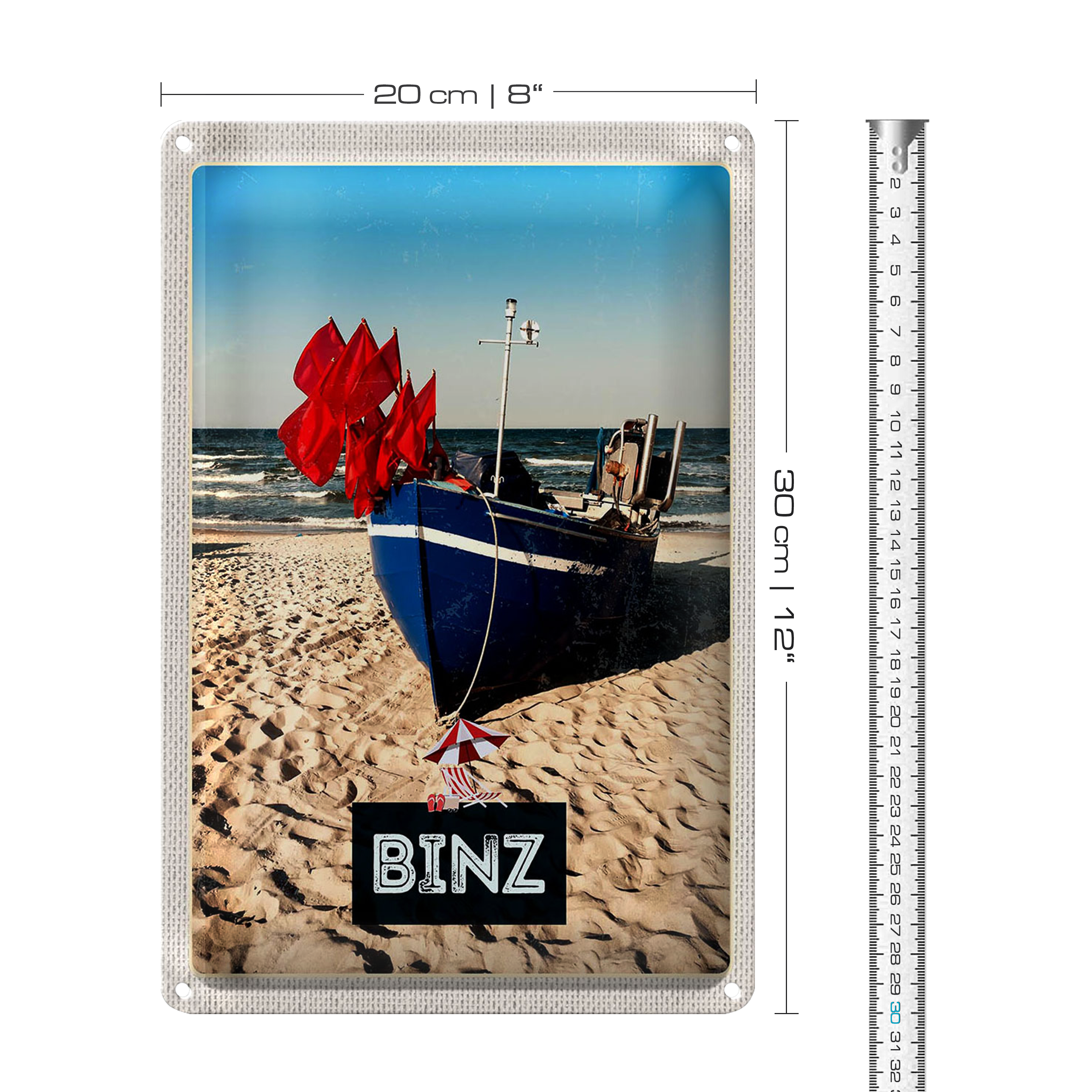 Blechschild Reise 20x30cm Binz Strand Deutschland Meer Urlaub