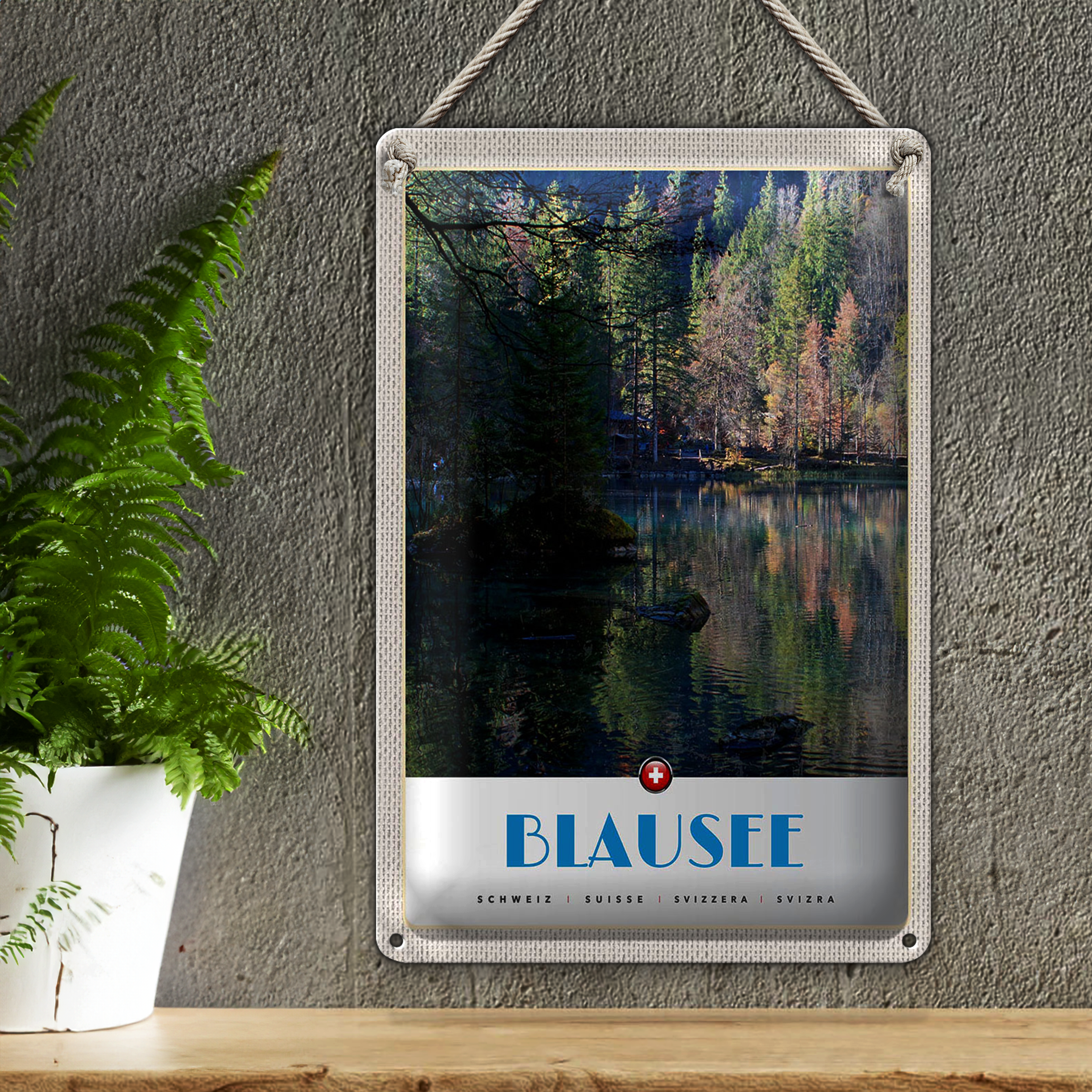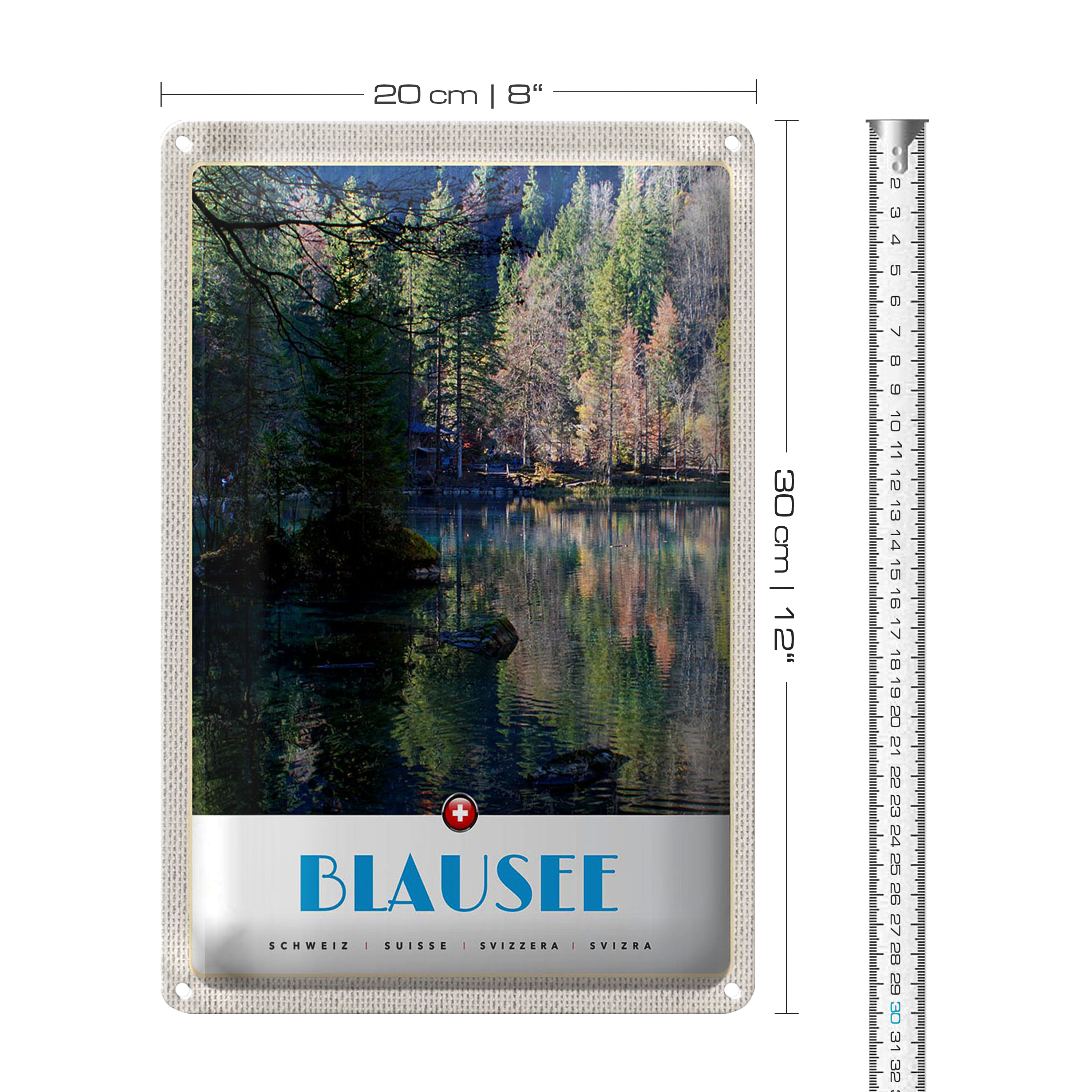 Blechschild Reise 20x30cm Blausee Schweiz Natur Wald Urlaub