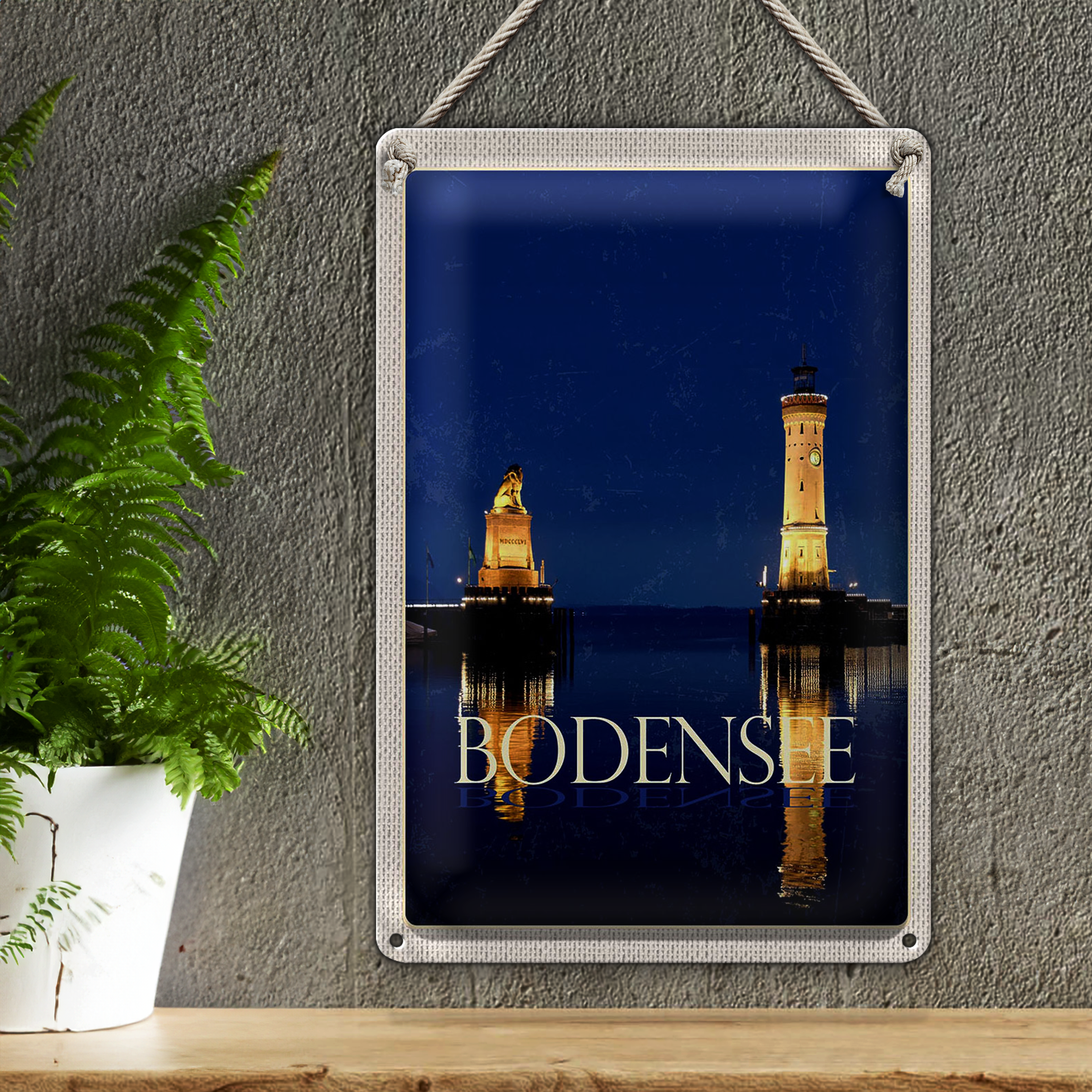 Blechschild Reise 20x30cm Bodensee Deutschland Leuchttutm Nacht
