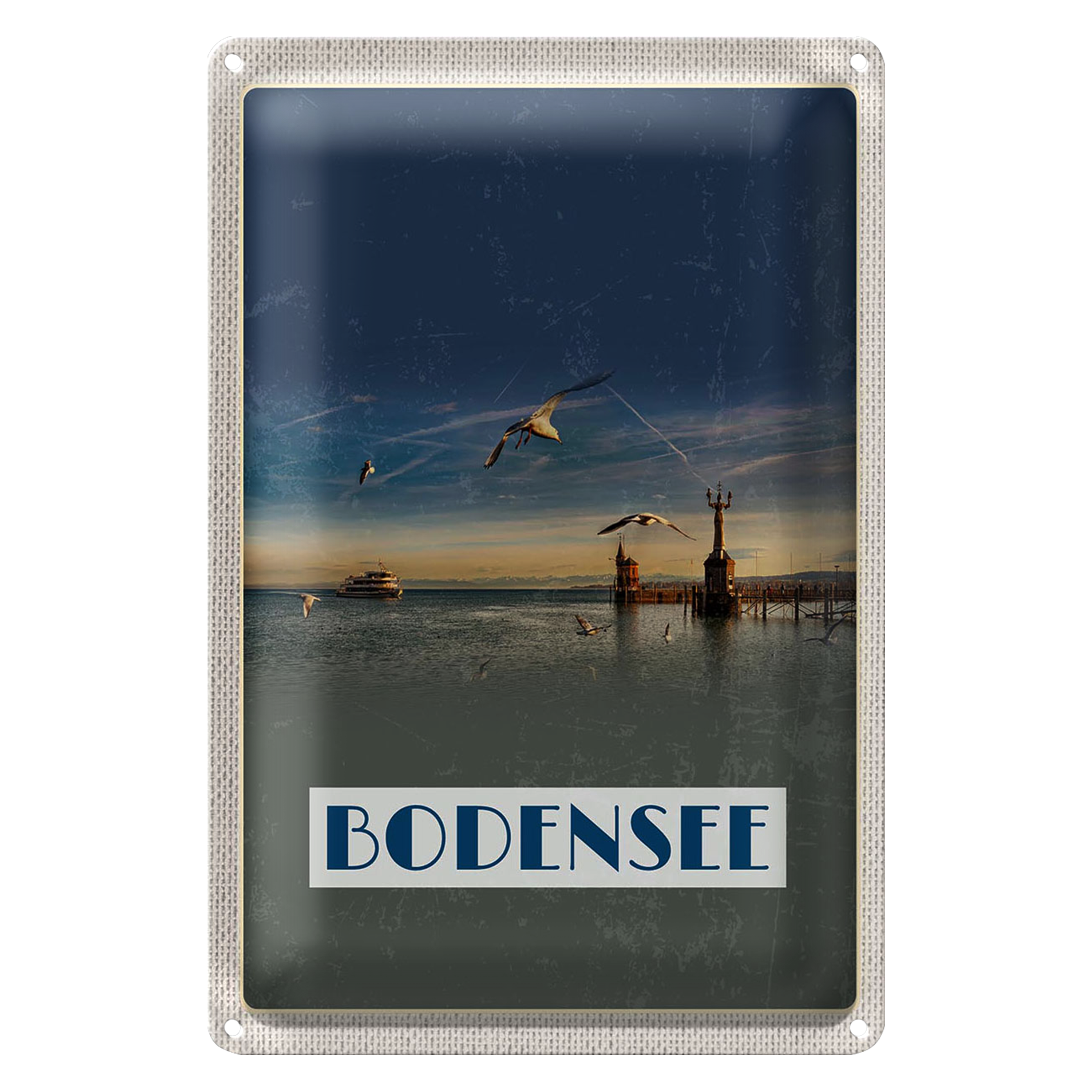 Blechschild Reise 20x30cm Bodensee Deutschland Strand See Möwe