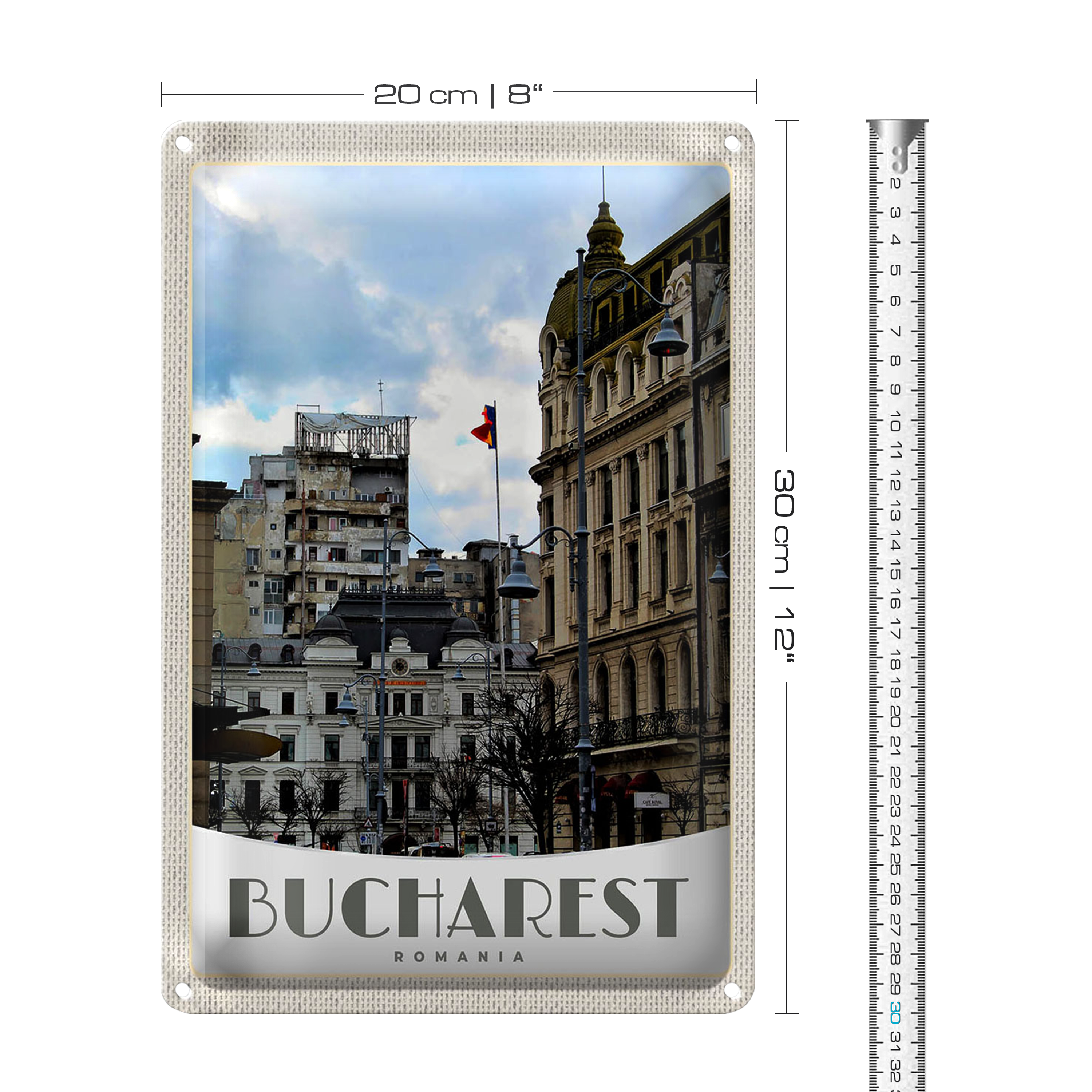 Blechschild Reise 20x30cm Bukarest Rumänien Hauptstadt Urlaub