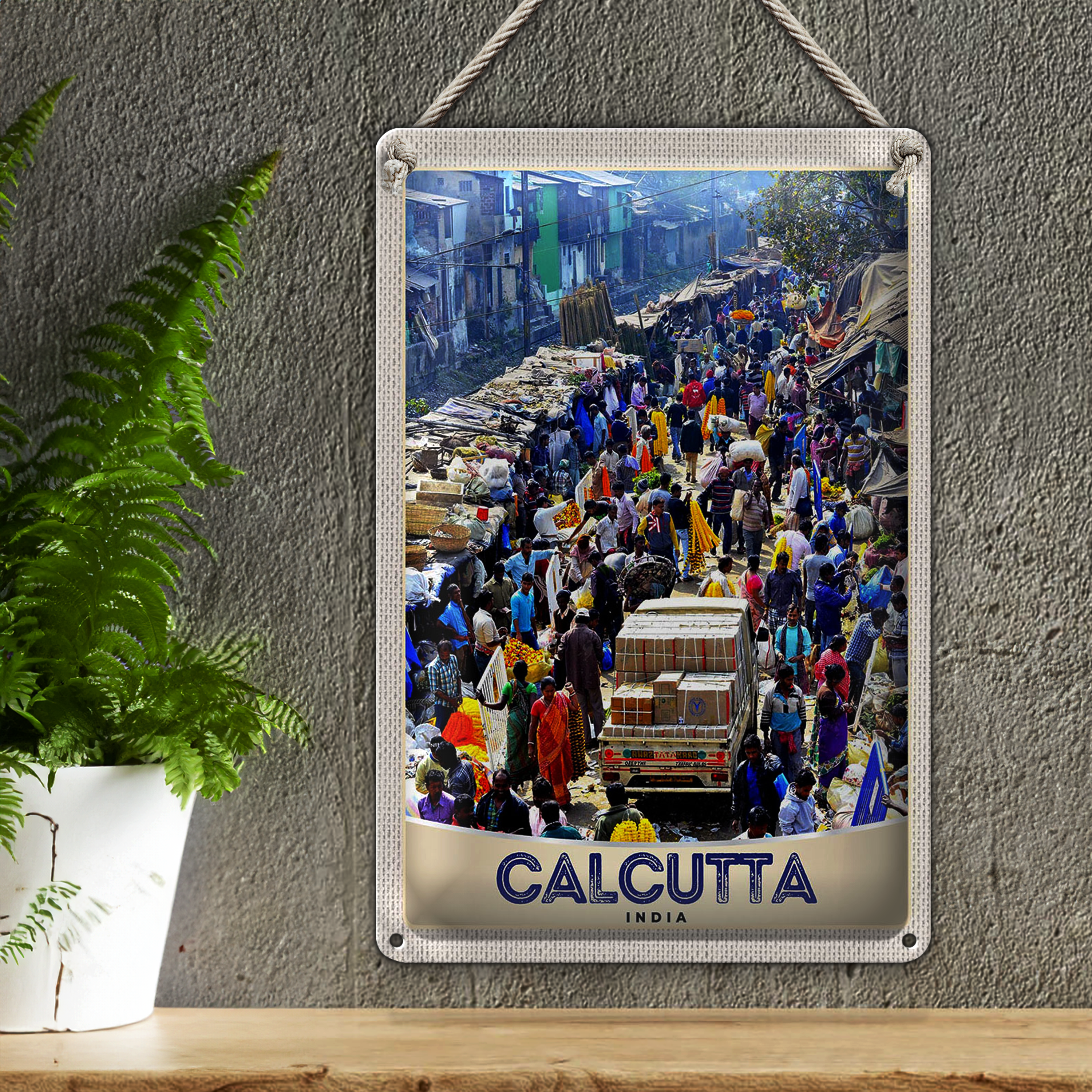 Blechschild Reise 20x30cm Calcutta Indien 4,5 Milionen Einwohner