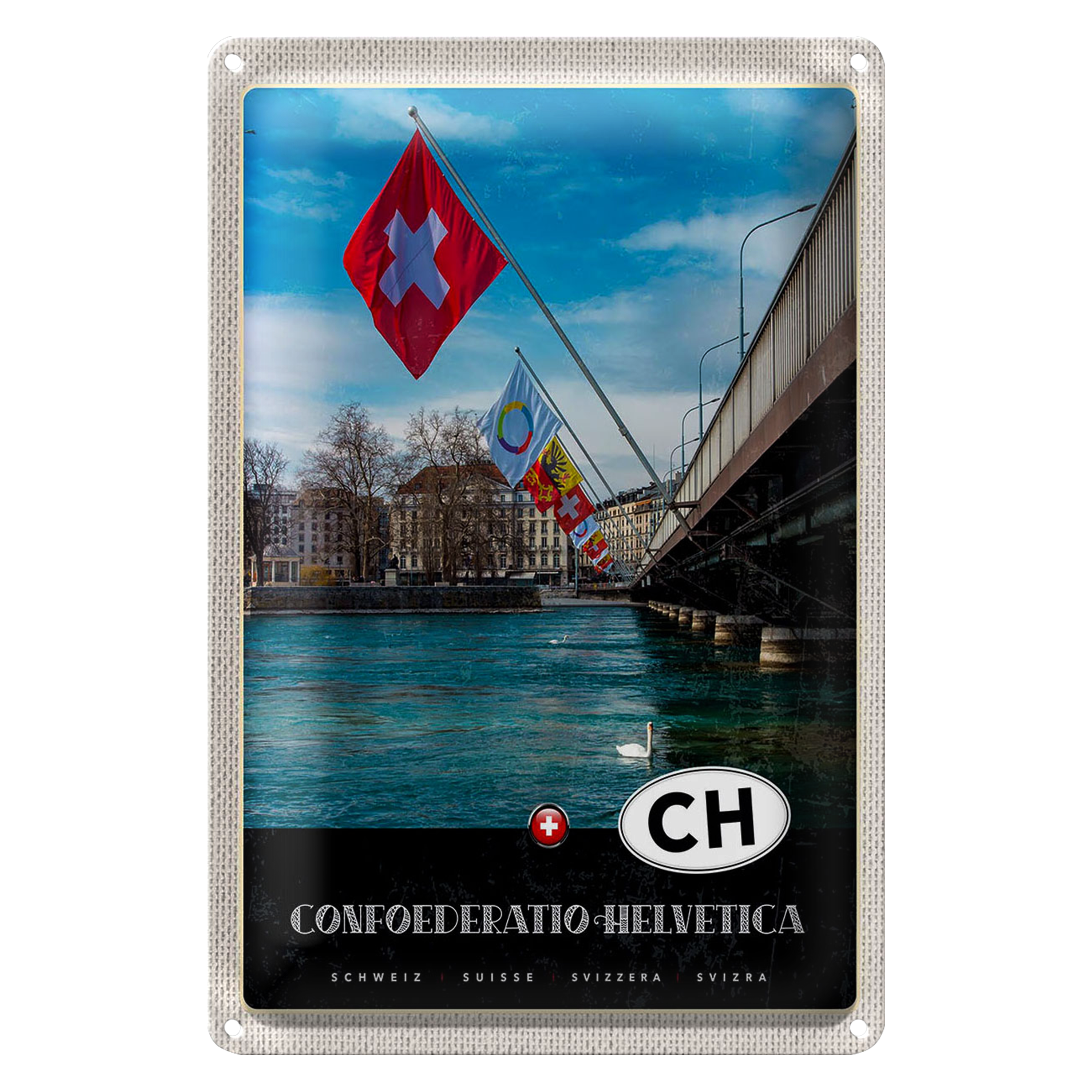 Blechschild Reise 20x30cm Confoederatio Helvetica Brücke Flagge