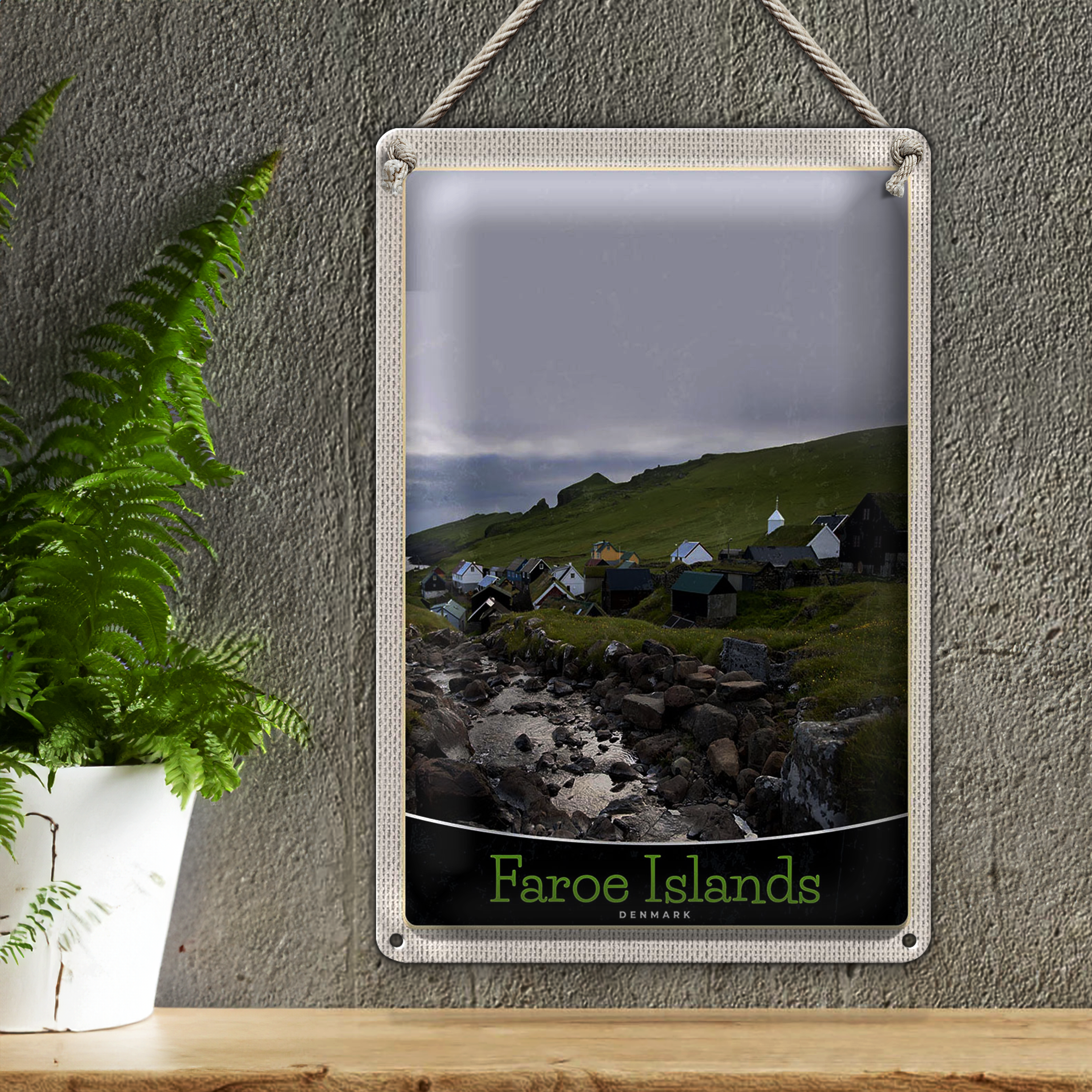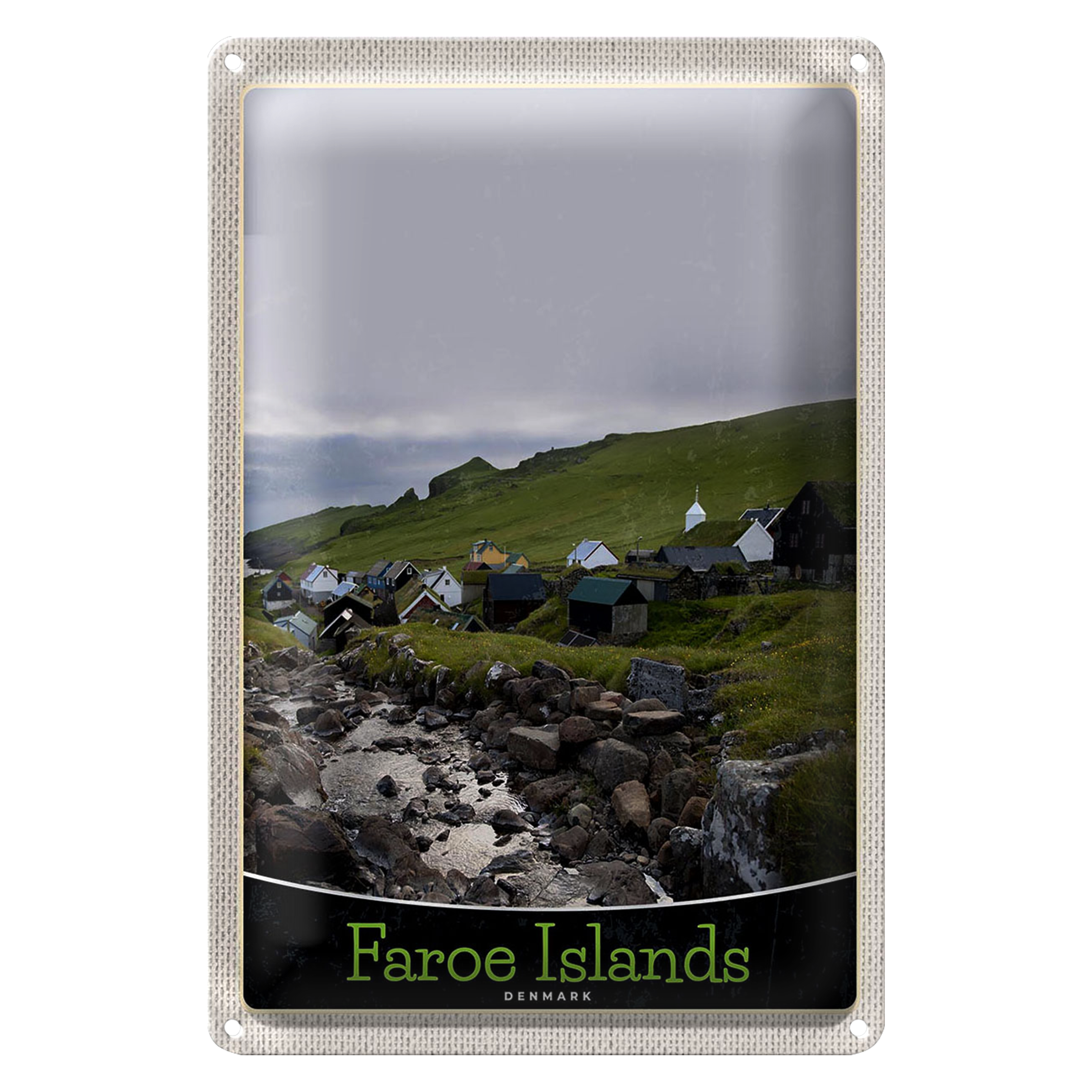 Blechschild Reise 20x30cm Dänemark Faroe Islands Häuser Wiese