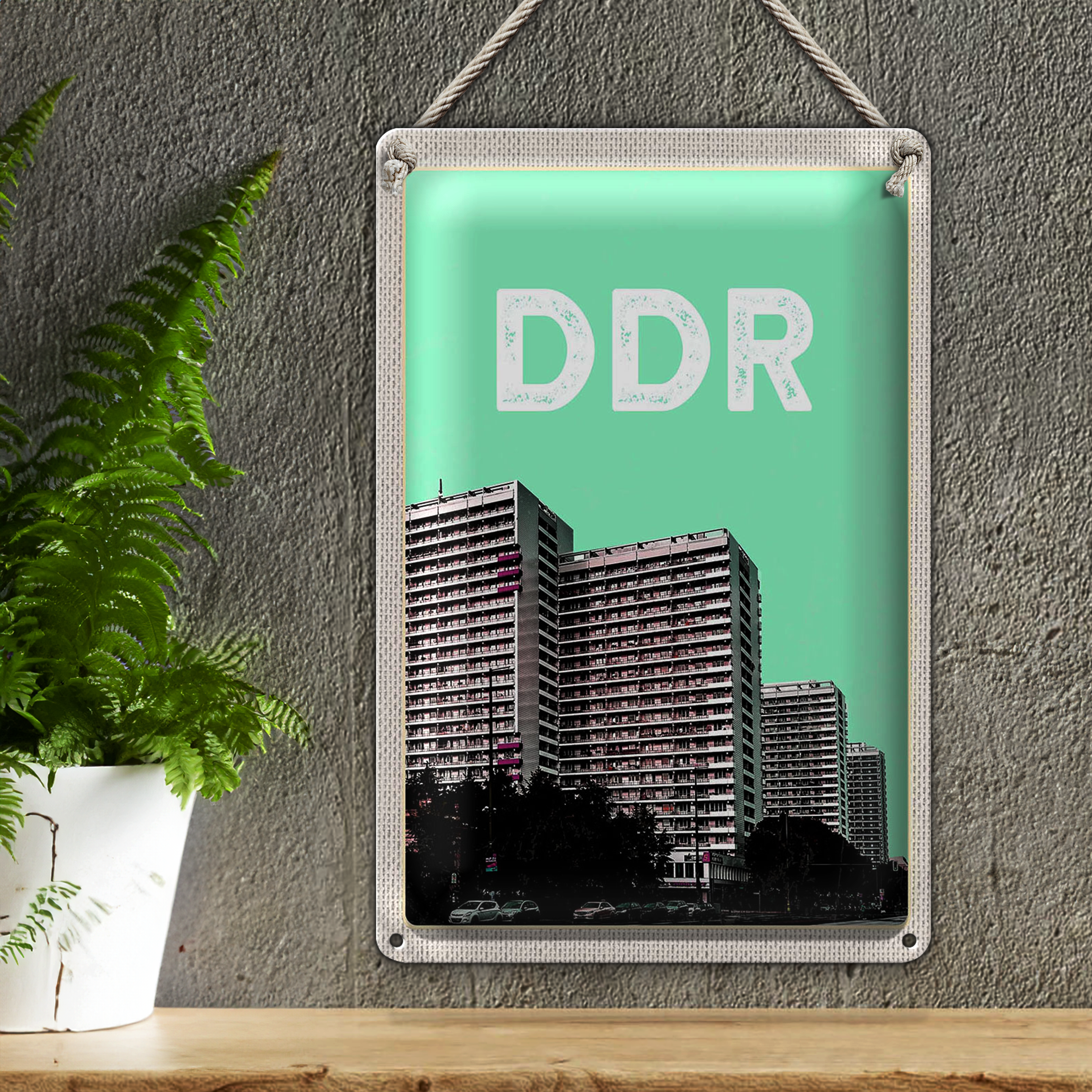 Blechschild Reise 20x30cm Deutschland DDR Zeit Hochhäuser Krieg
