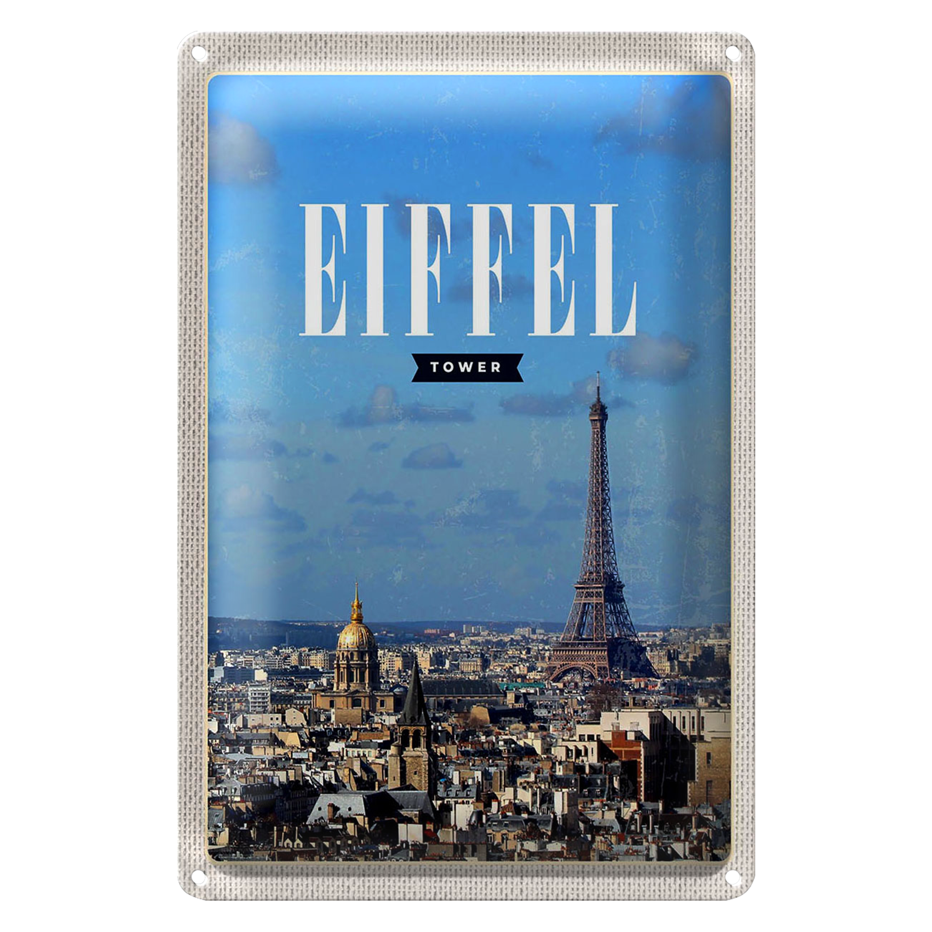 Blechschild Reise 20x30cm Eiffel Tower Panorama Bild Reiseziel