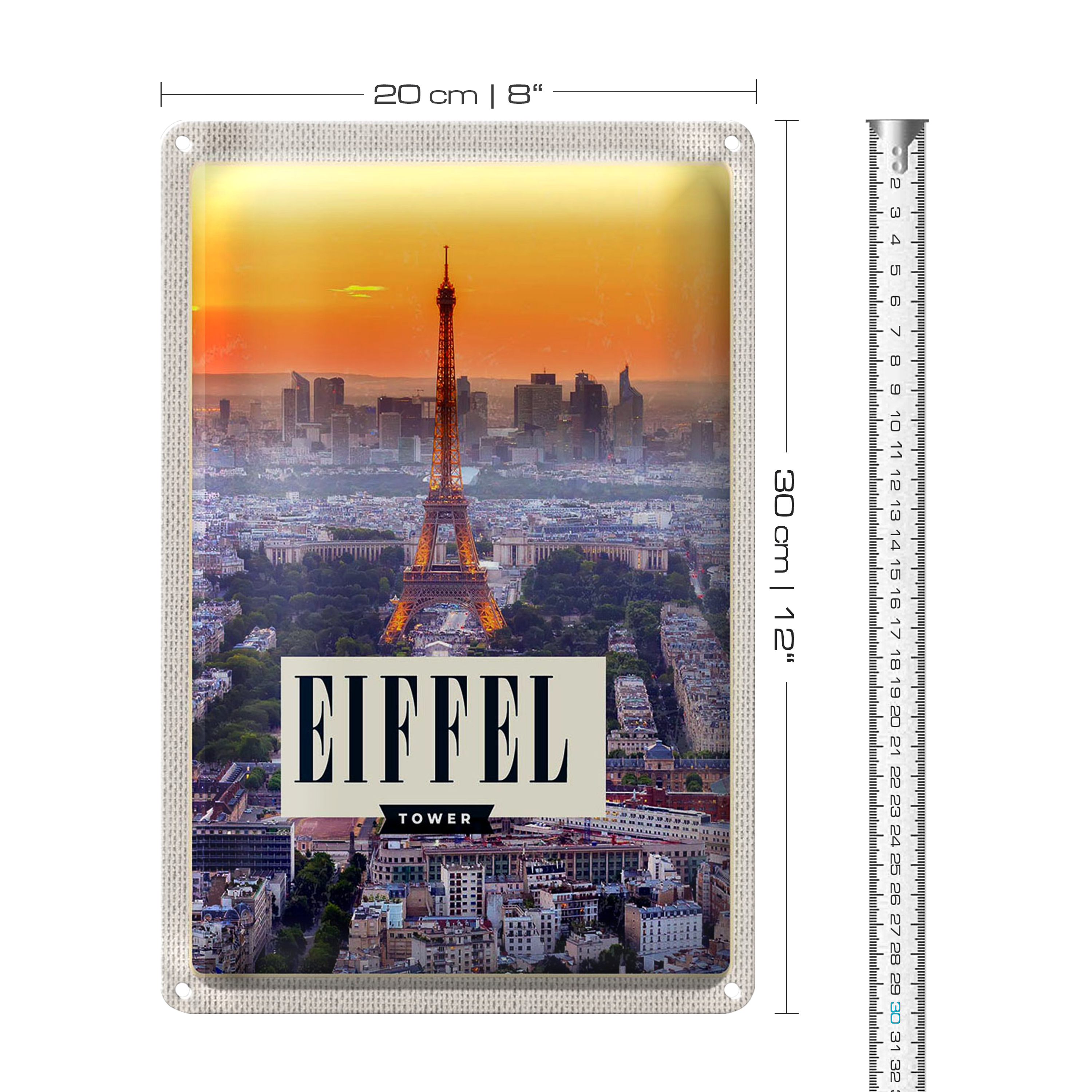 Blechschild Reise 20x30cm Eiffel tower Sonnenuntergang Stadt