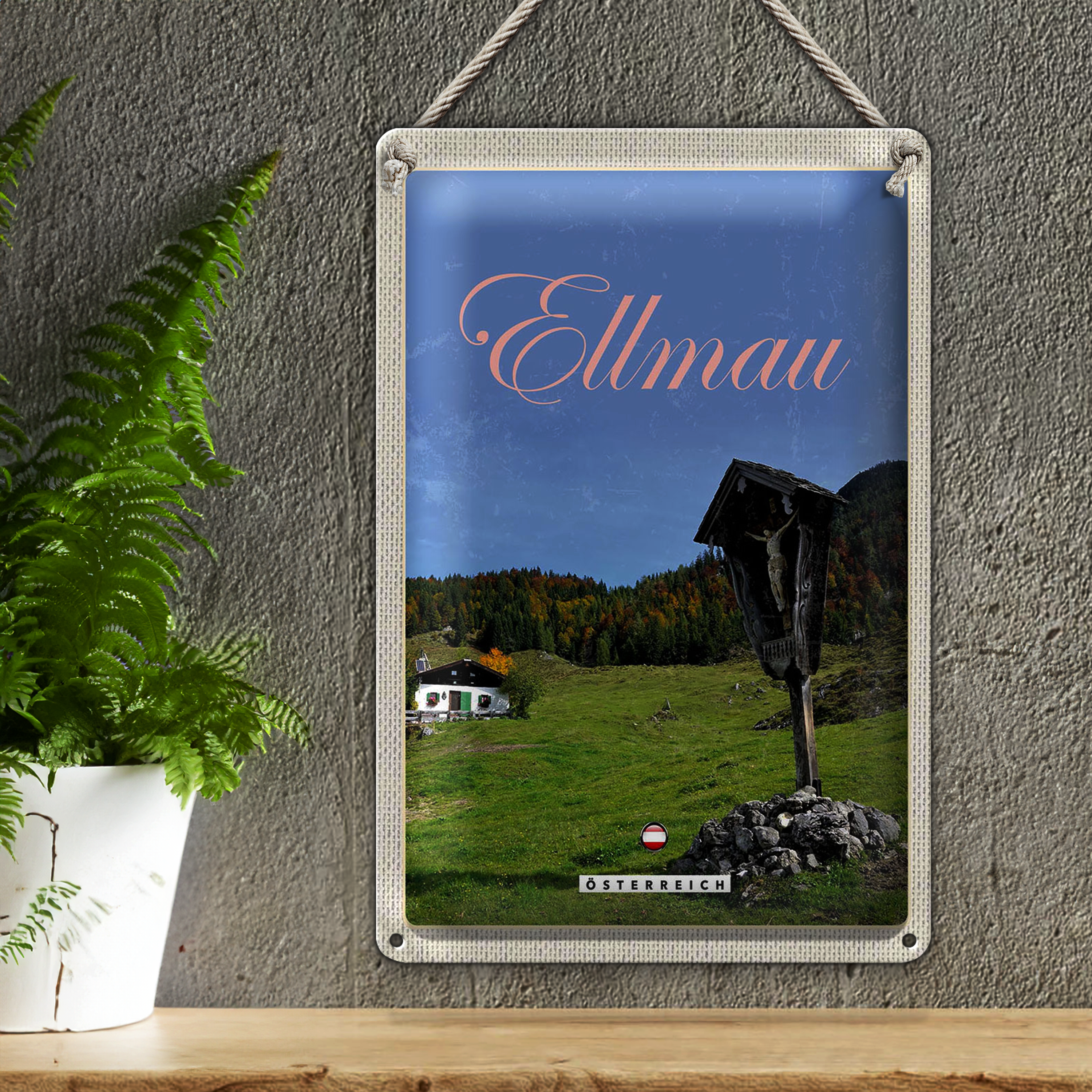 Blechschild Reise 20x30cm Ellmau Österreich Weide Natur Jesus