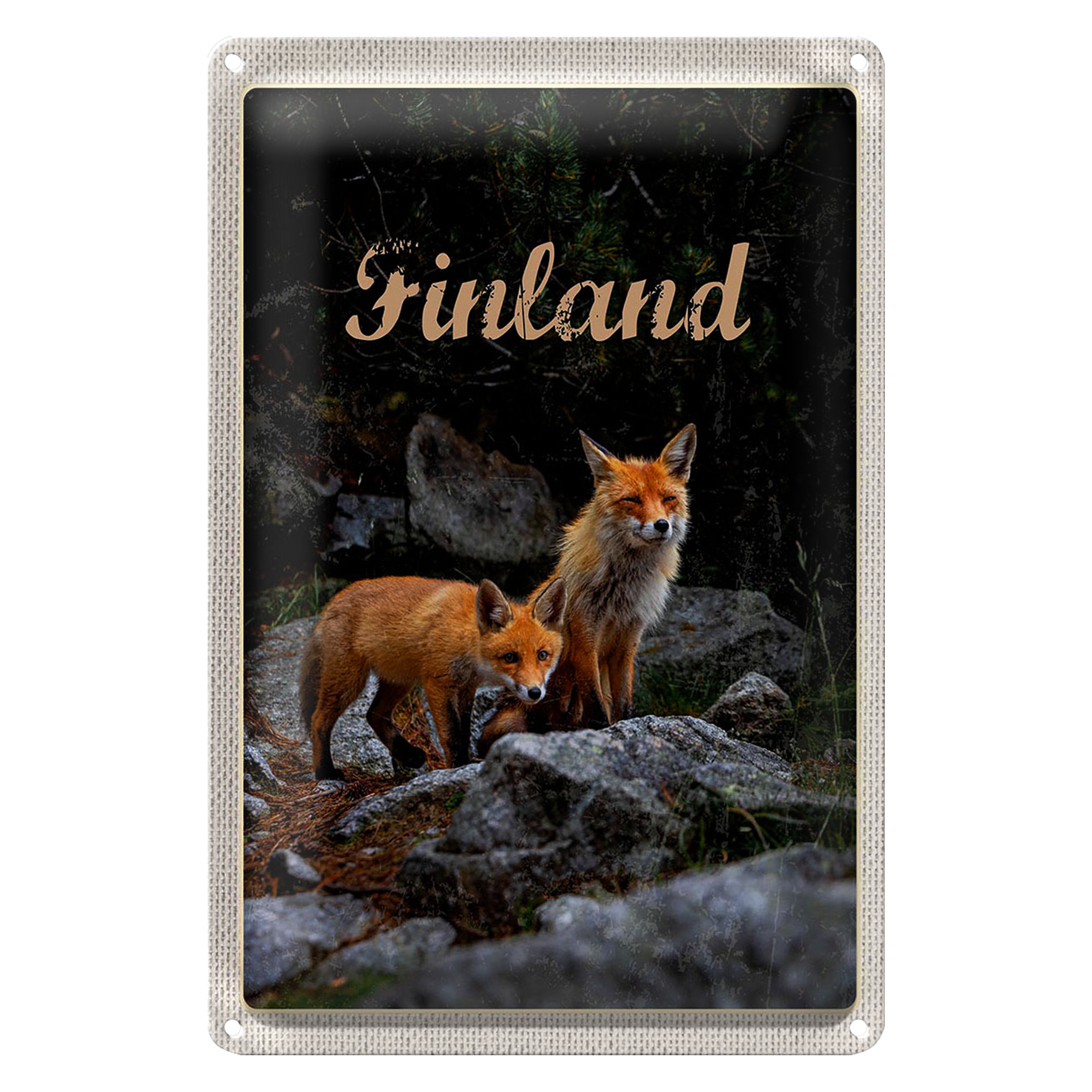Blechschild Reise 20x30cm Finnland Füchse Wald Tiere Natur