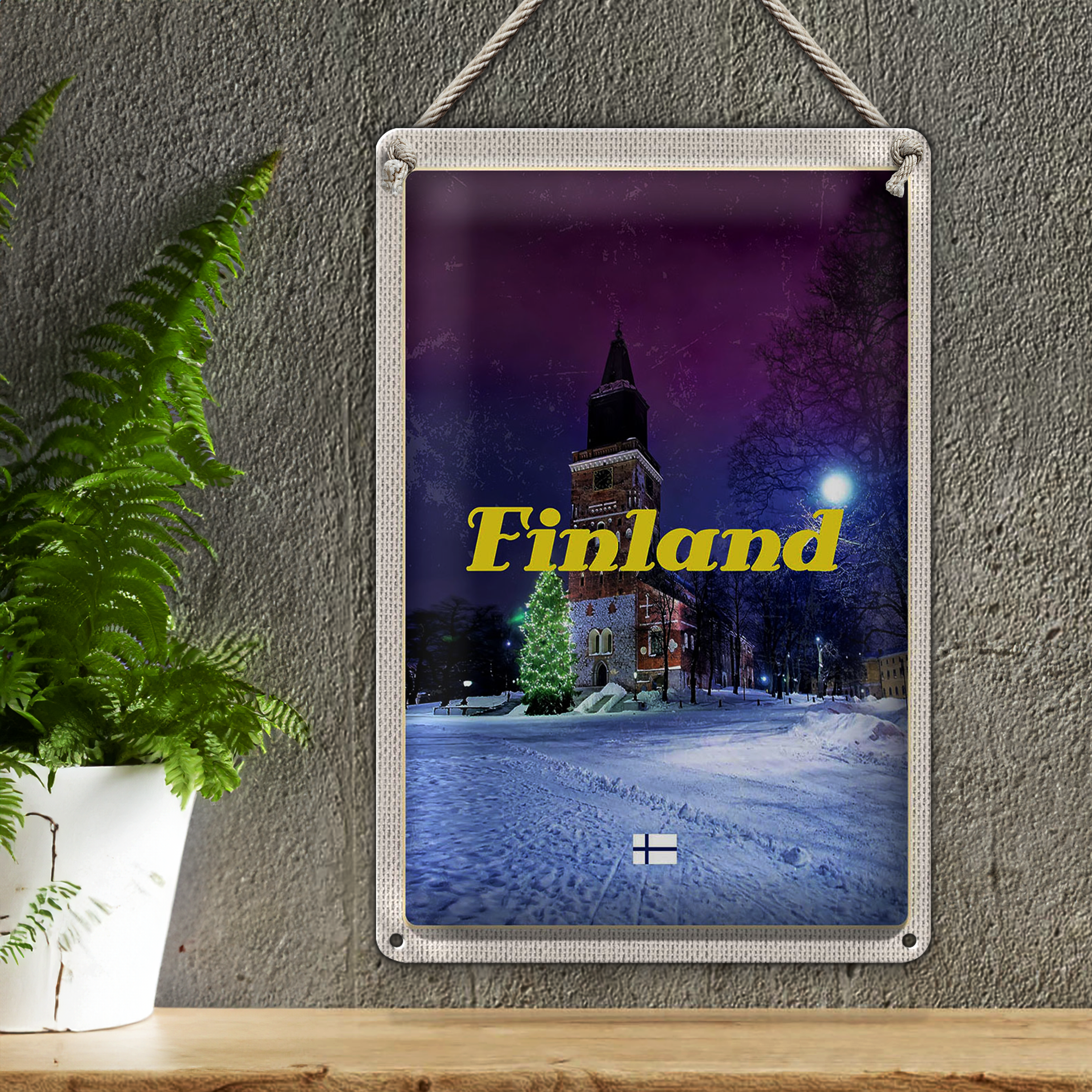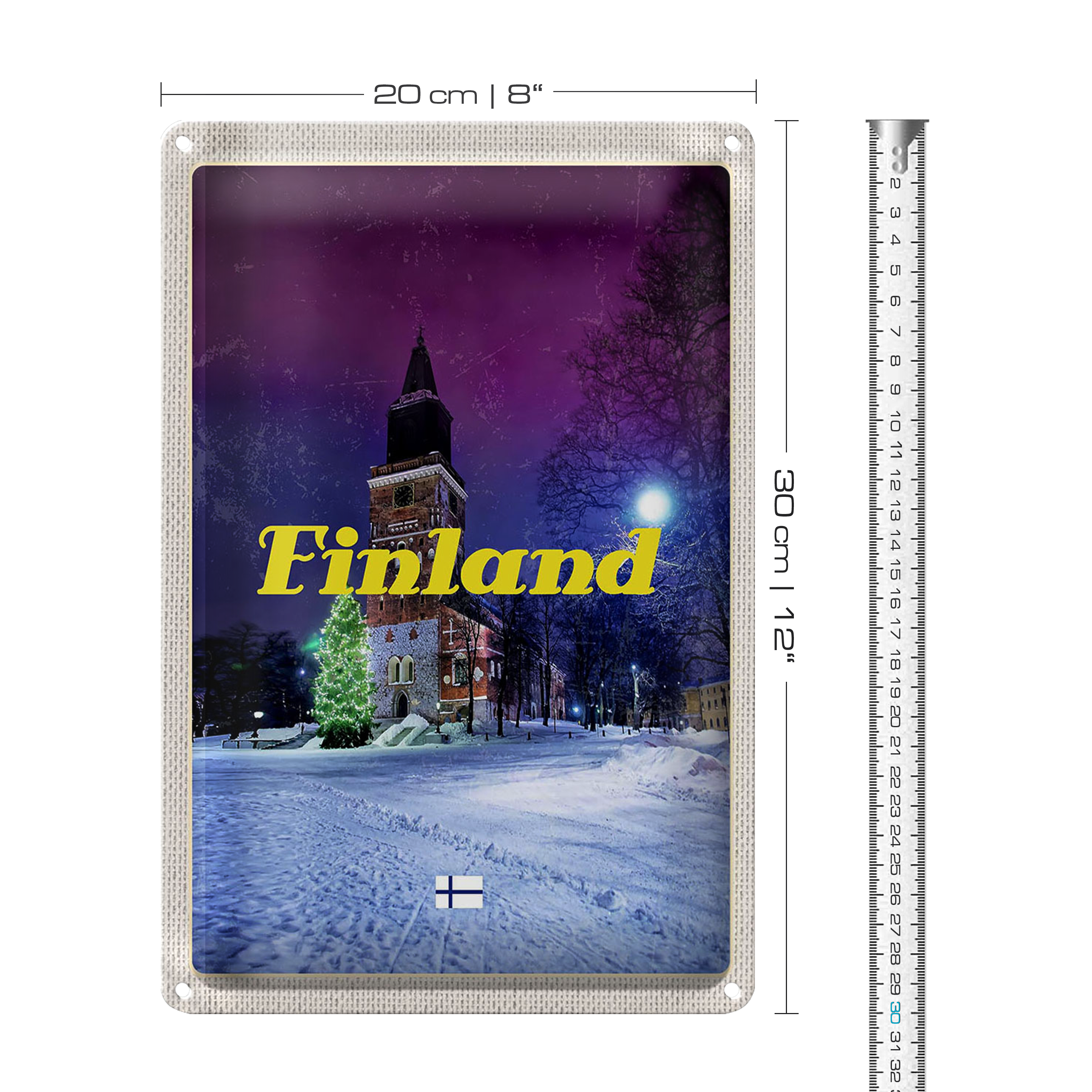 Blechschild Reise 20x30cm Finnland Schnee Winter Tannenbaum