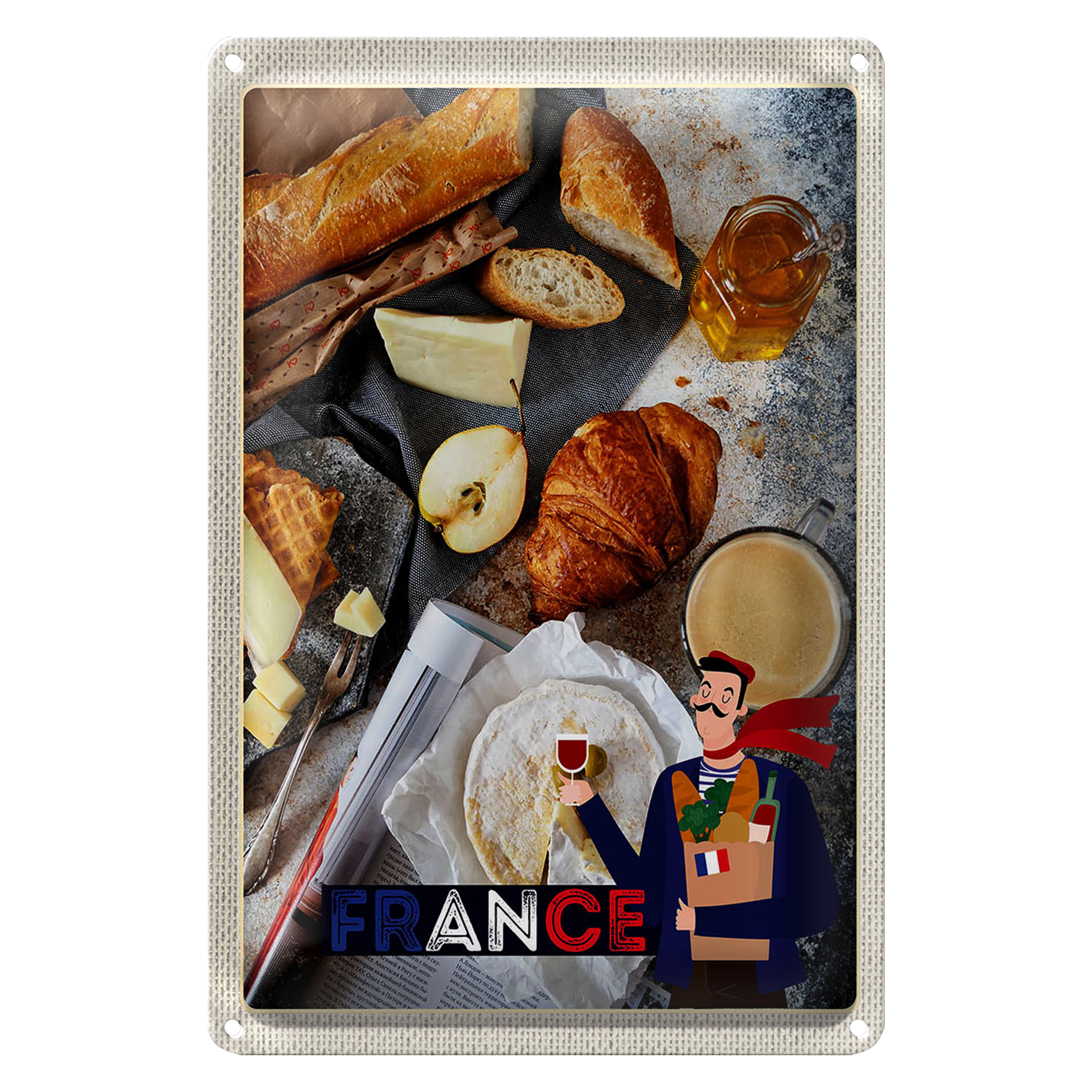 Blechschild Reise 20x30cm Frankreich Käse Baguette Honig Schild