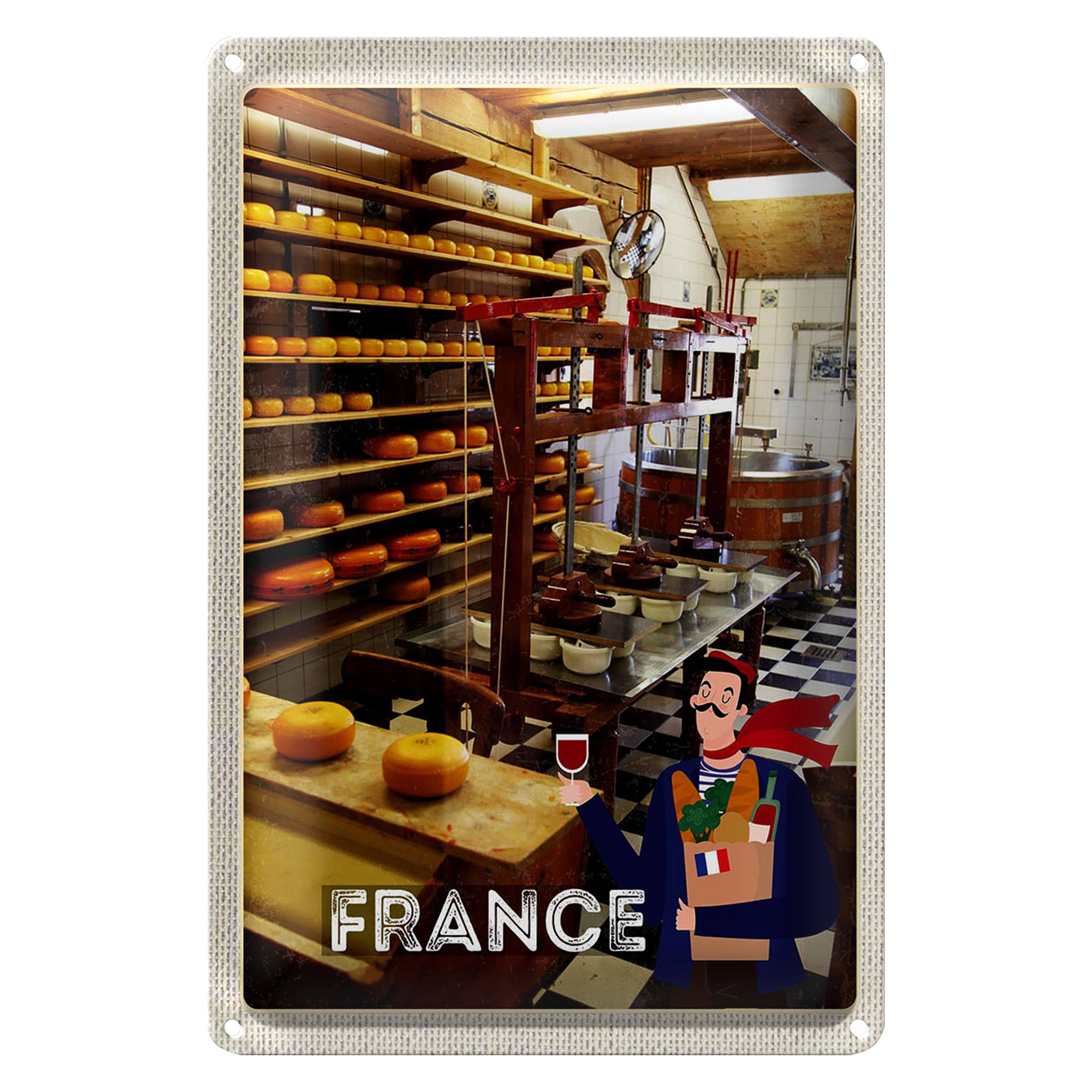 Blechschild Reise 20x30cm Frankreich Käsemaschine Produktion