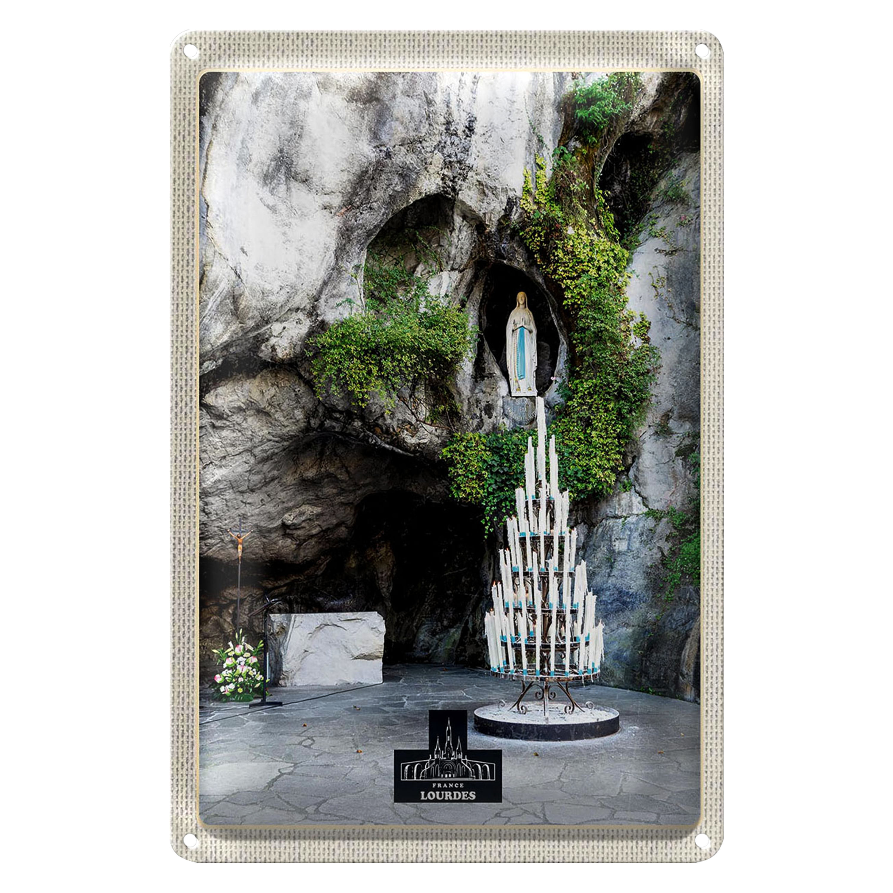 Blechschild Reise 20x30cm Frankreich Lourdes Jesud Kerzen Natur