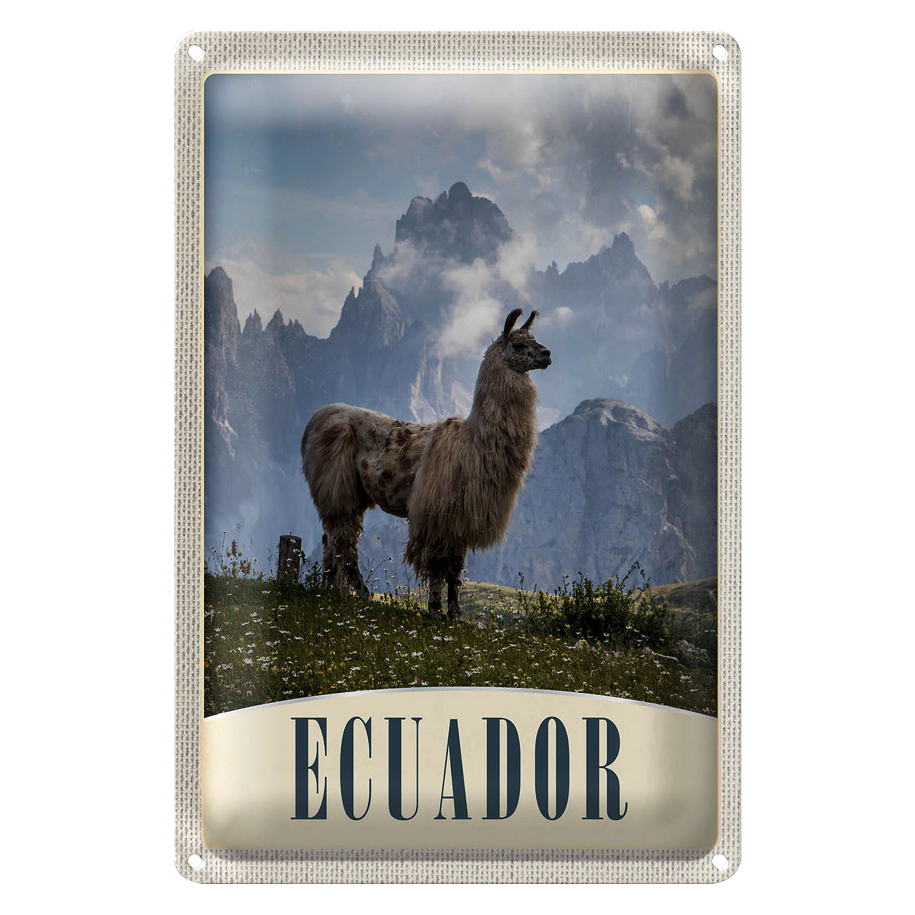 Blechschild Reise 20x30cm Fuerteventura Spanien Lama Berge