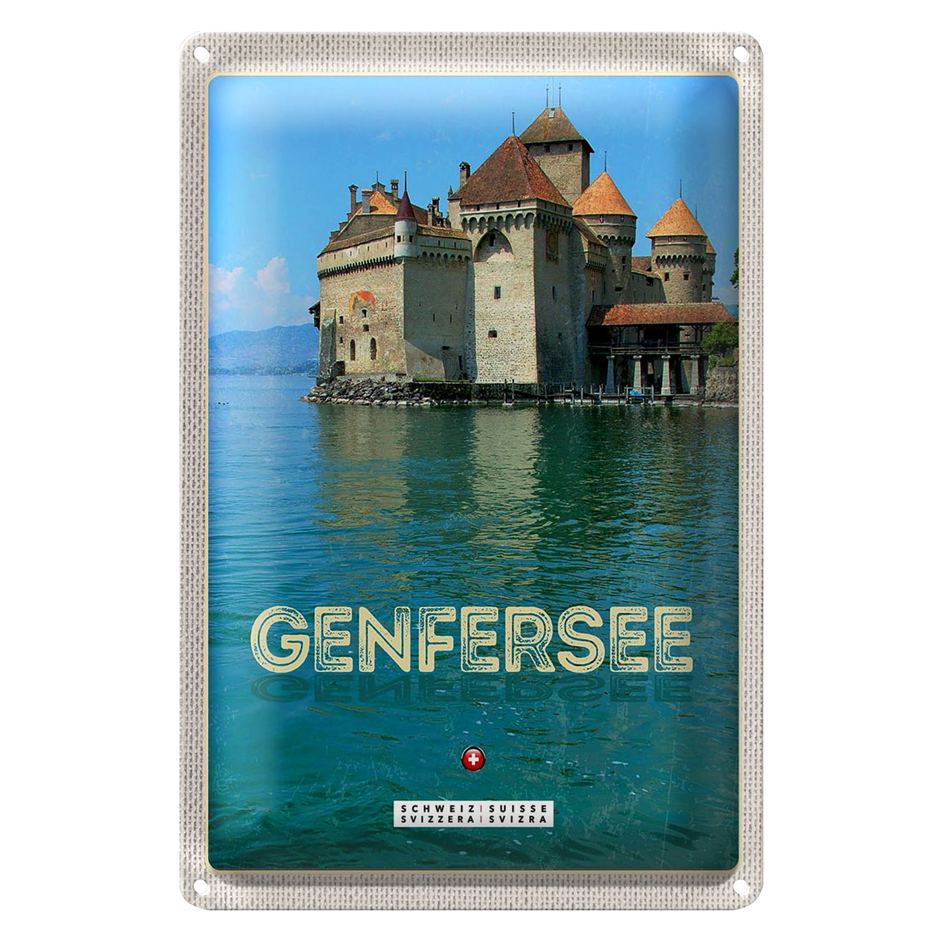 Blechschild Reise 20x30cm Genfersee Sommer Urlaub schwimmen