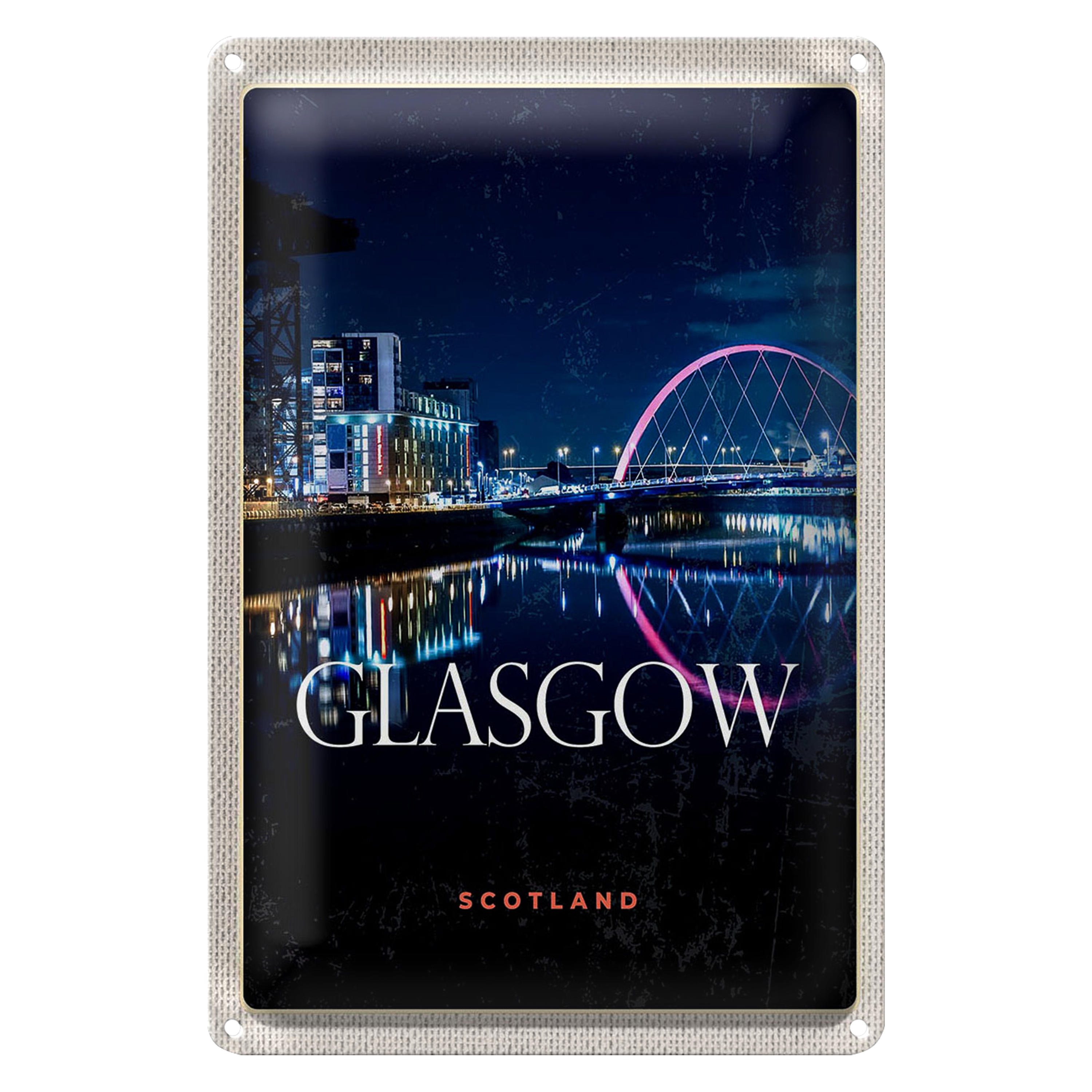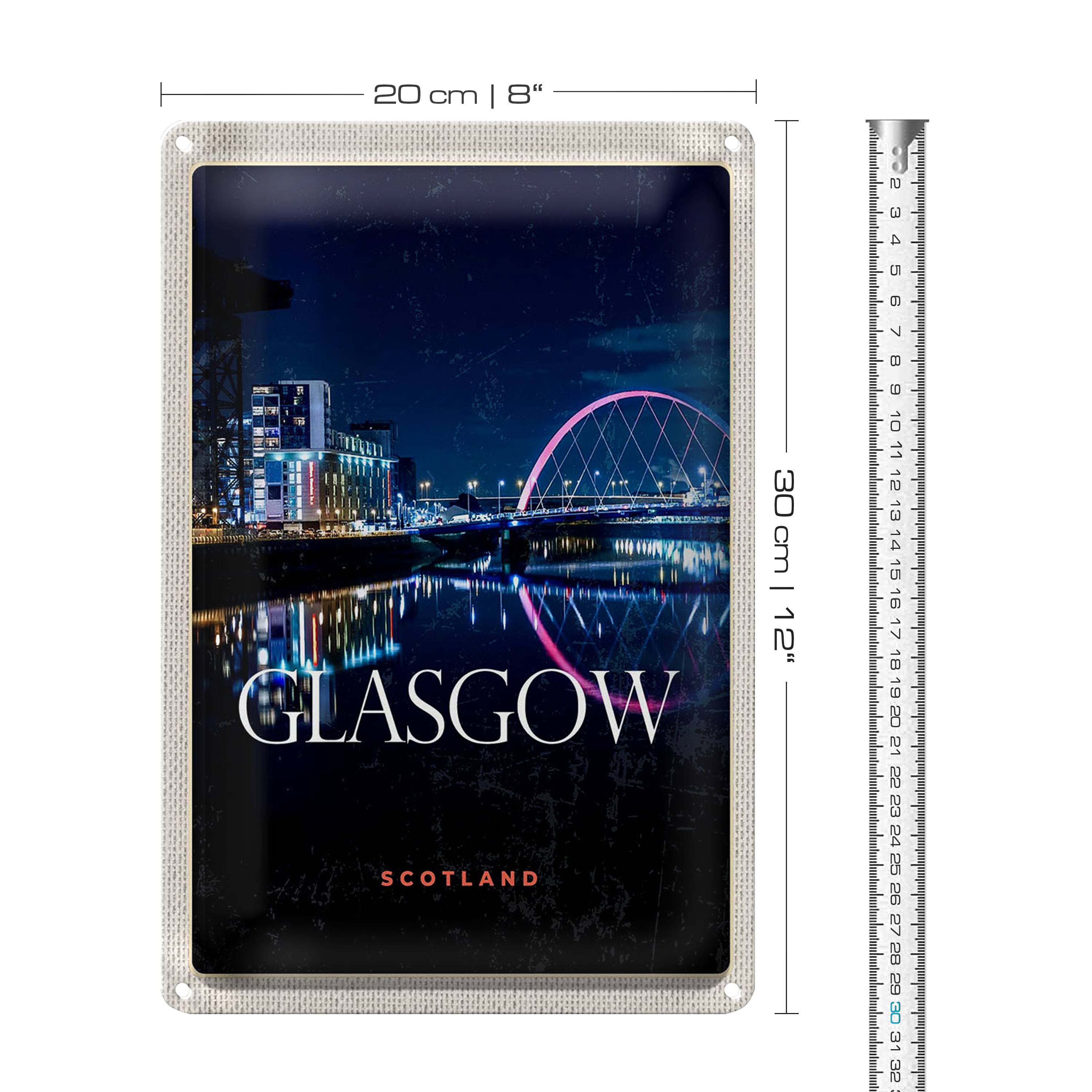 Blechschild Reise 20x30cm Glasgow Scotland Retro Hafenstadt