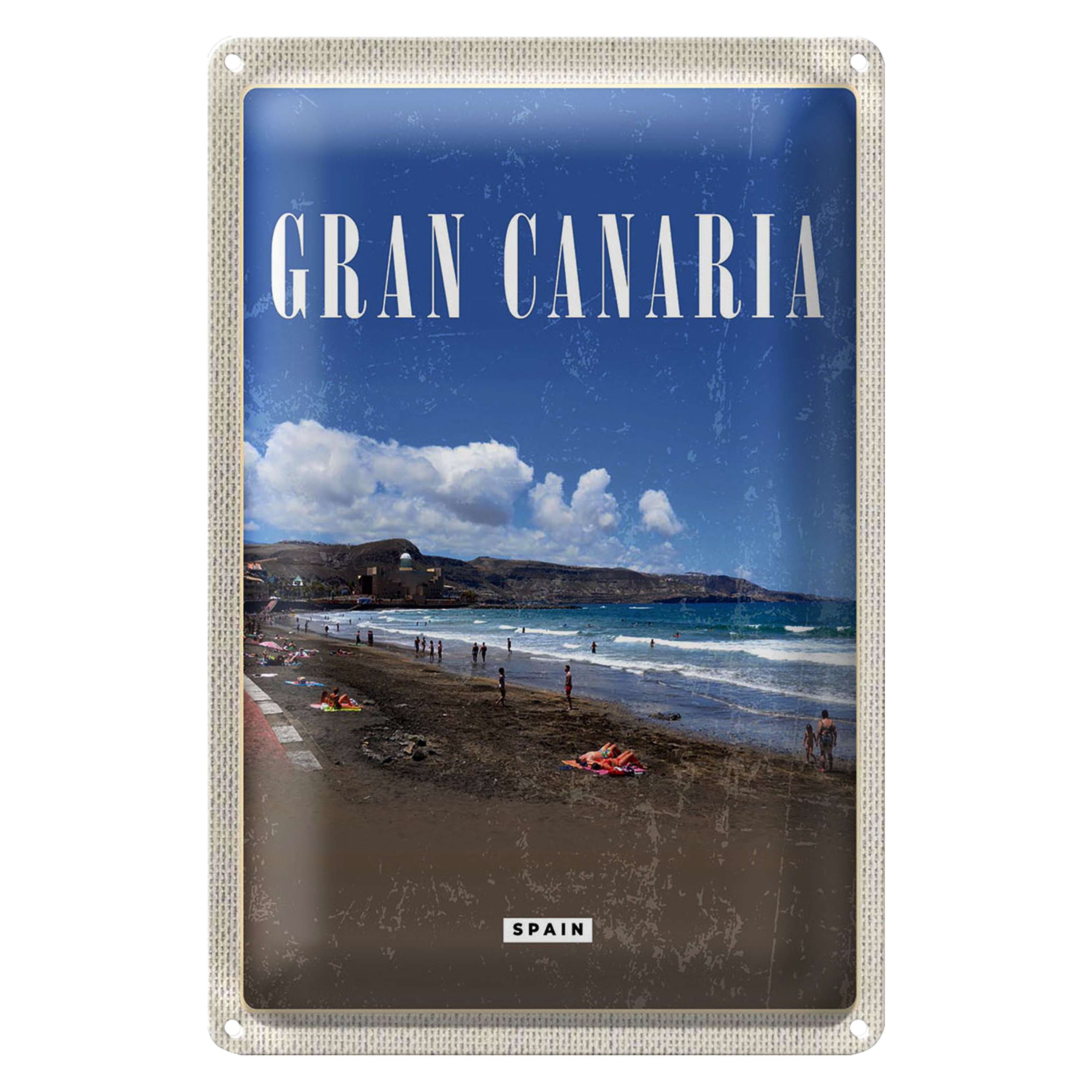 Blechschild Reise 20x30cm Gran Canaria Spain Meer Strand Retro