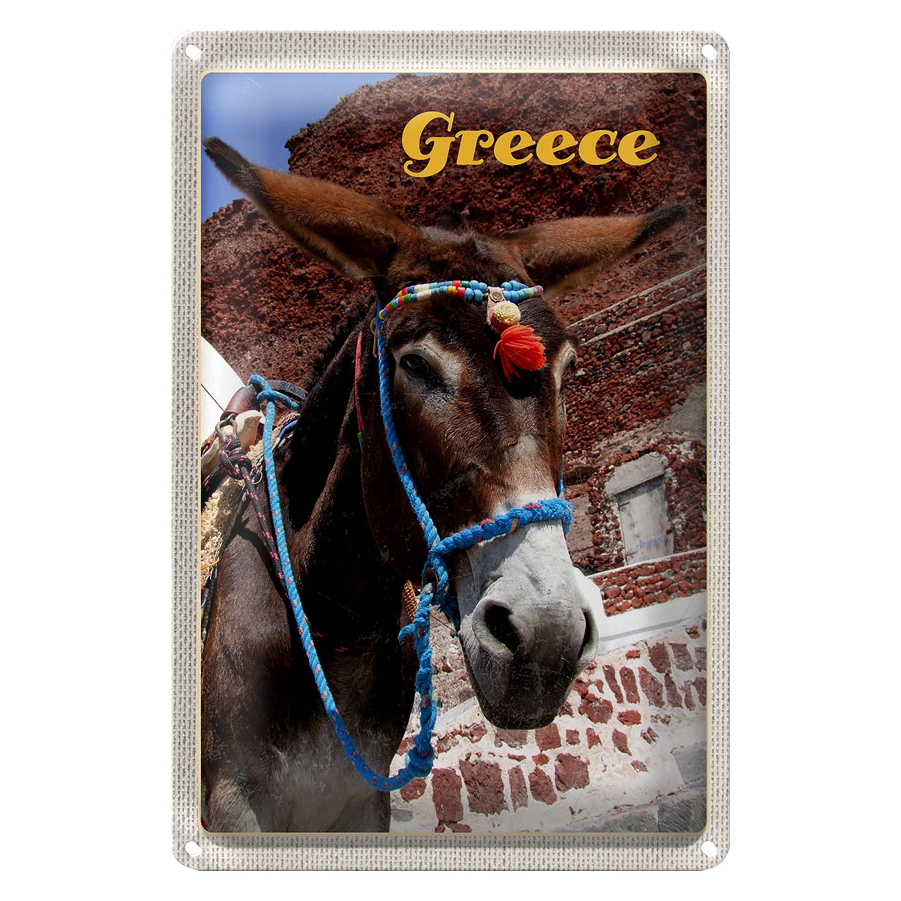 Blechschild Reise 20x30cm Greece Griechenland Esel auf Gebirge