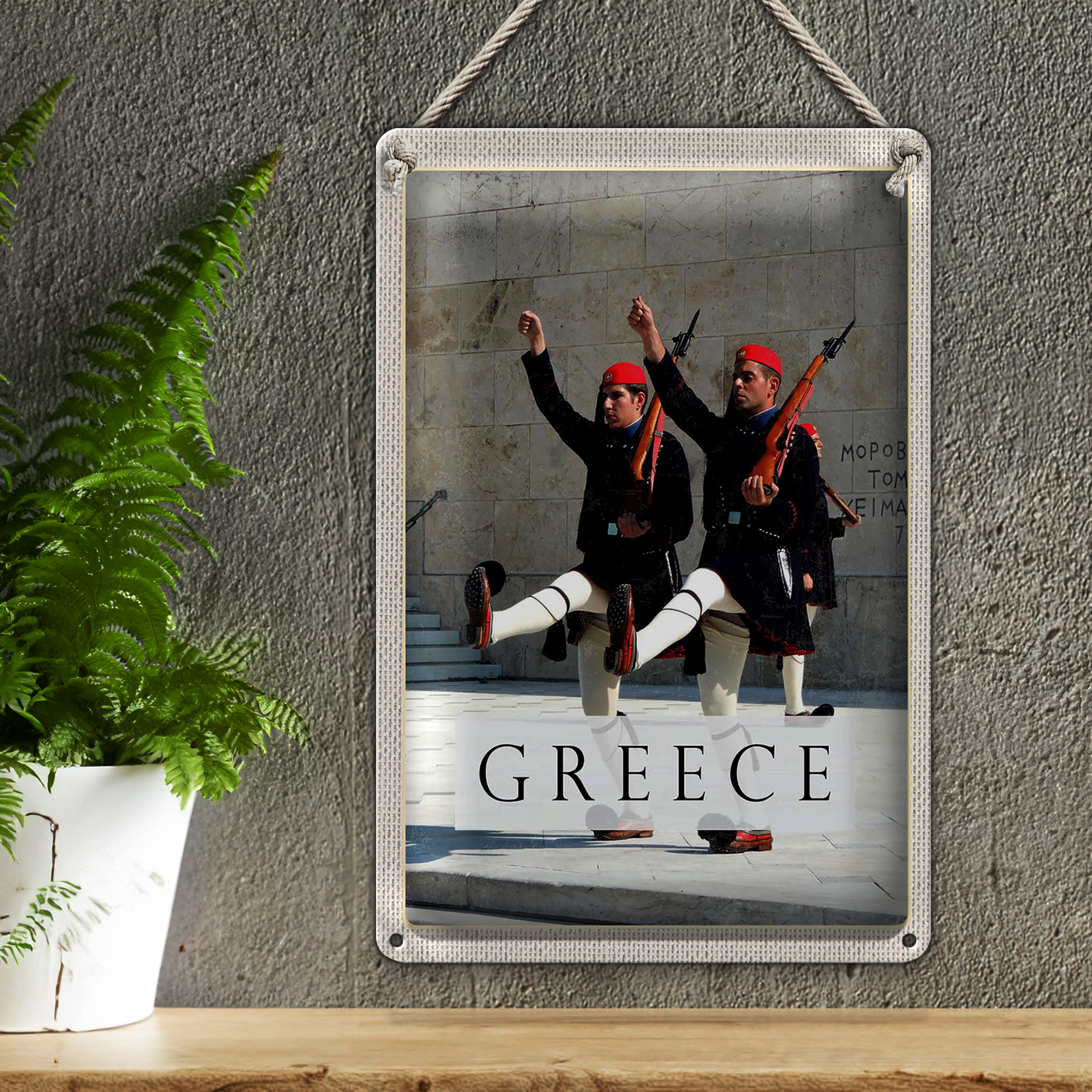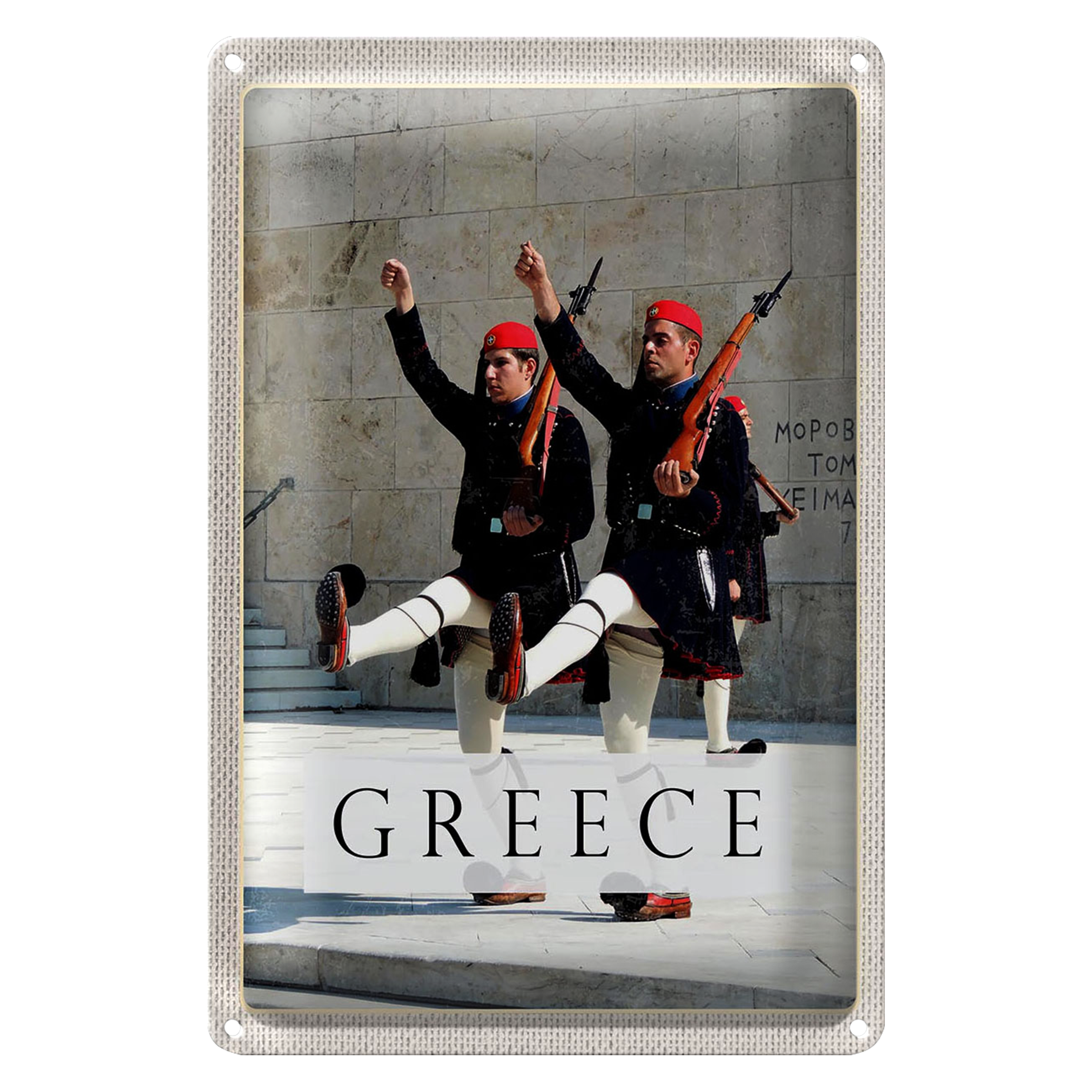 Blechschild Reise 20x30cm Greece Griechenland Soldaten Waffe Hut