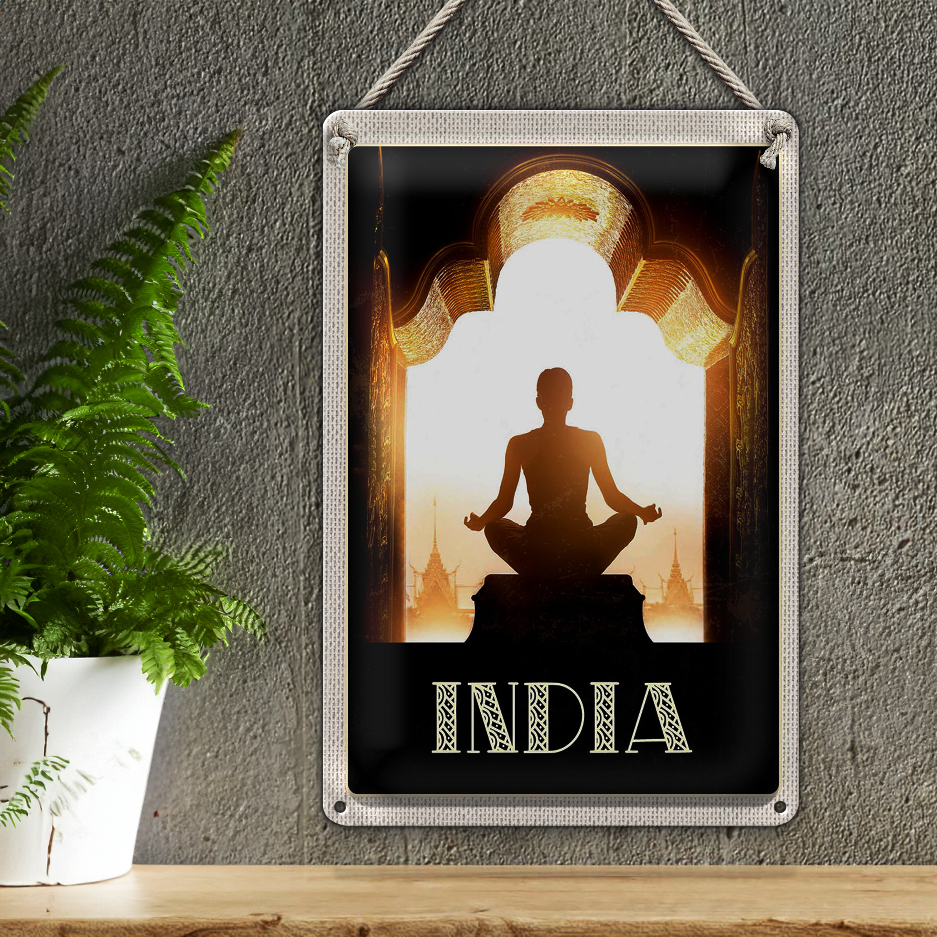 Blechschild Reise 20x30cm Indien Gemälde Meditieren Entspannung