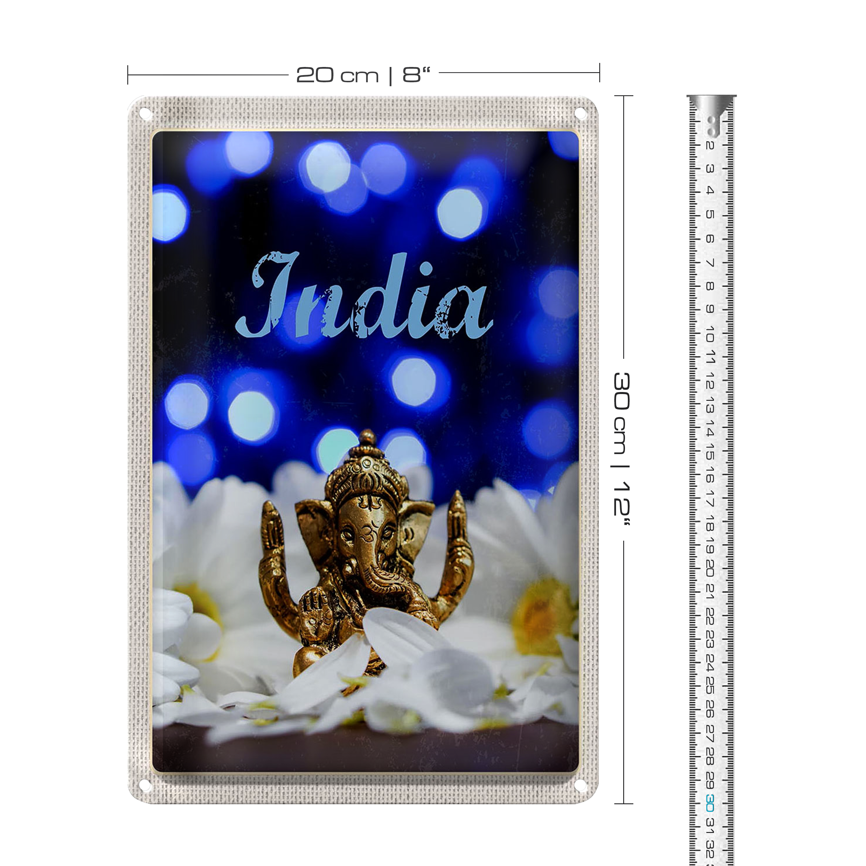 Blechschild Reise 20x30cm Indien Skulptur Elefant Ganesha Hindu