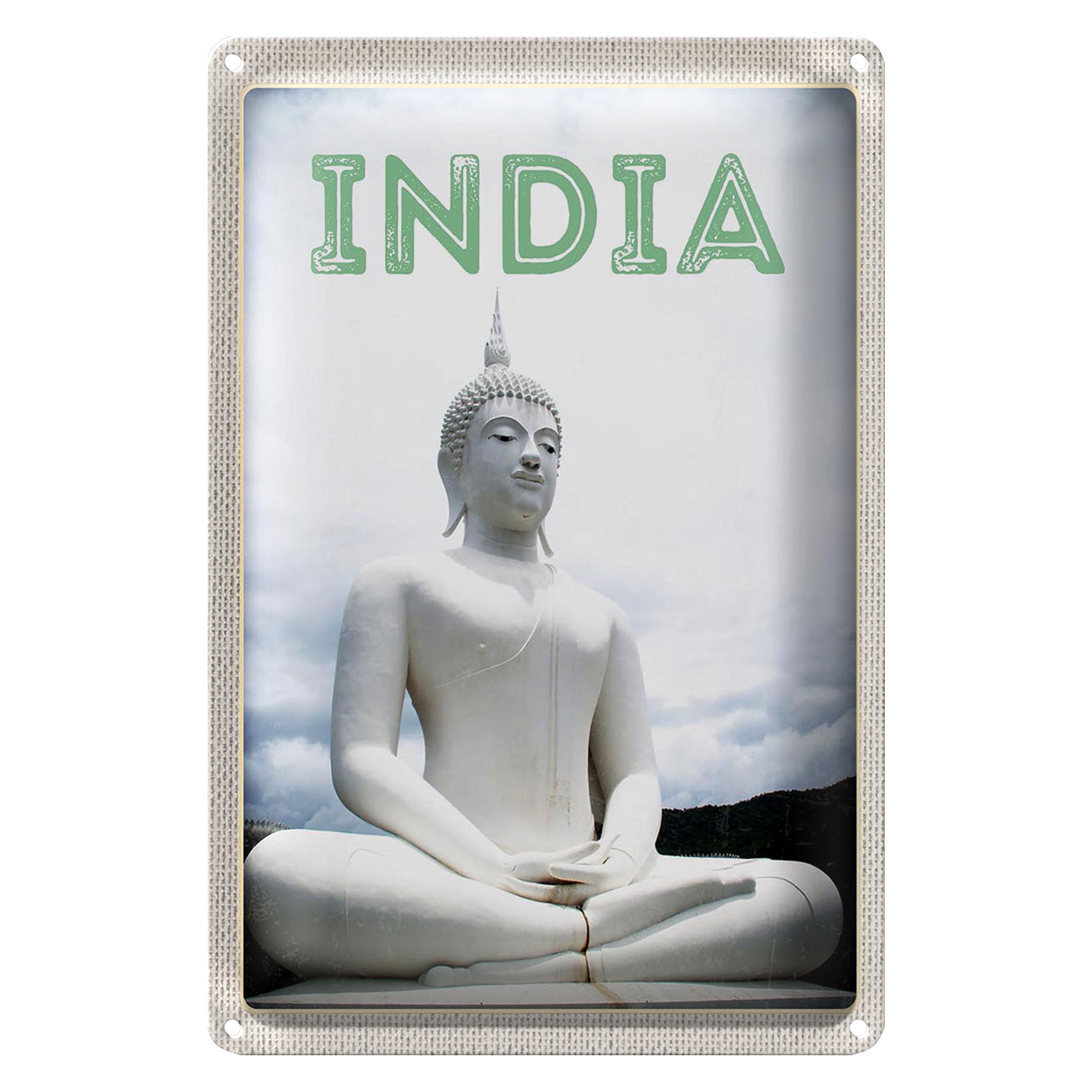 Blechschild Reise 20x30cm Indien weiße Skulptur meditieren Gott