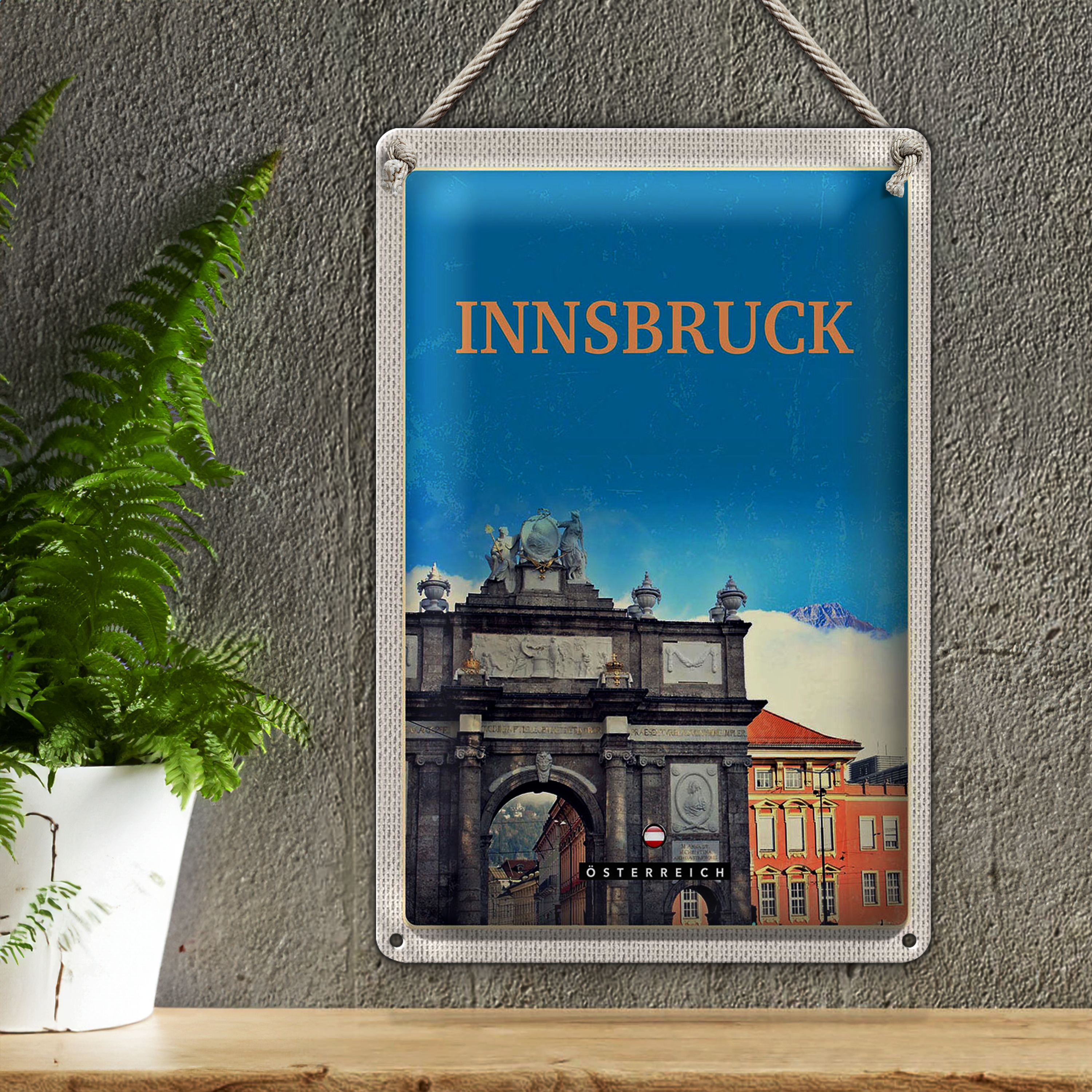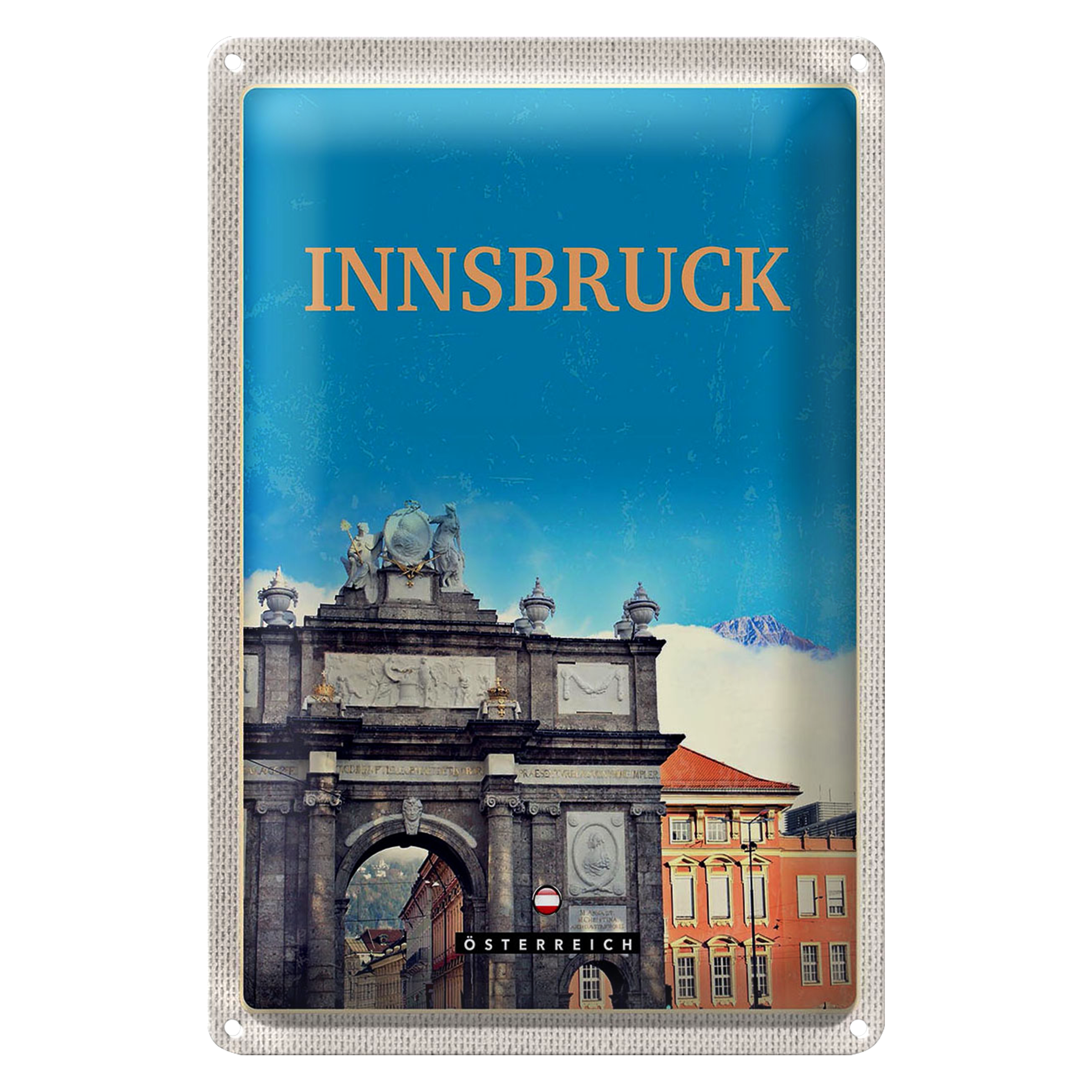 Blechschild Reise 20x30cm Innsbruck Österreich Schloss Skulptur