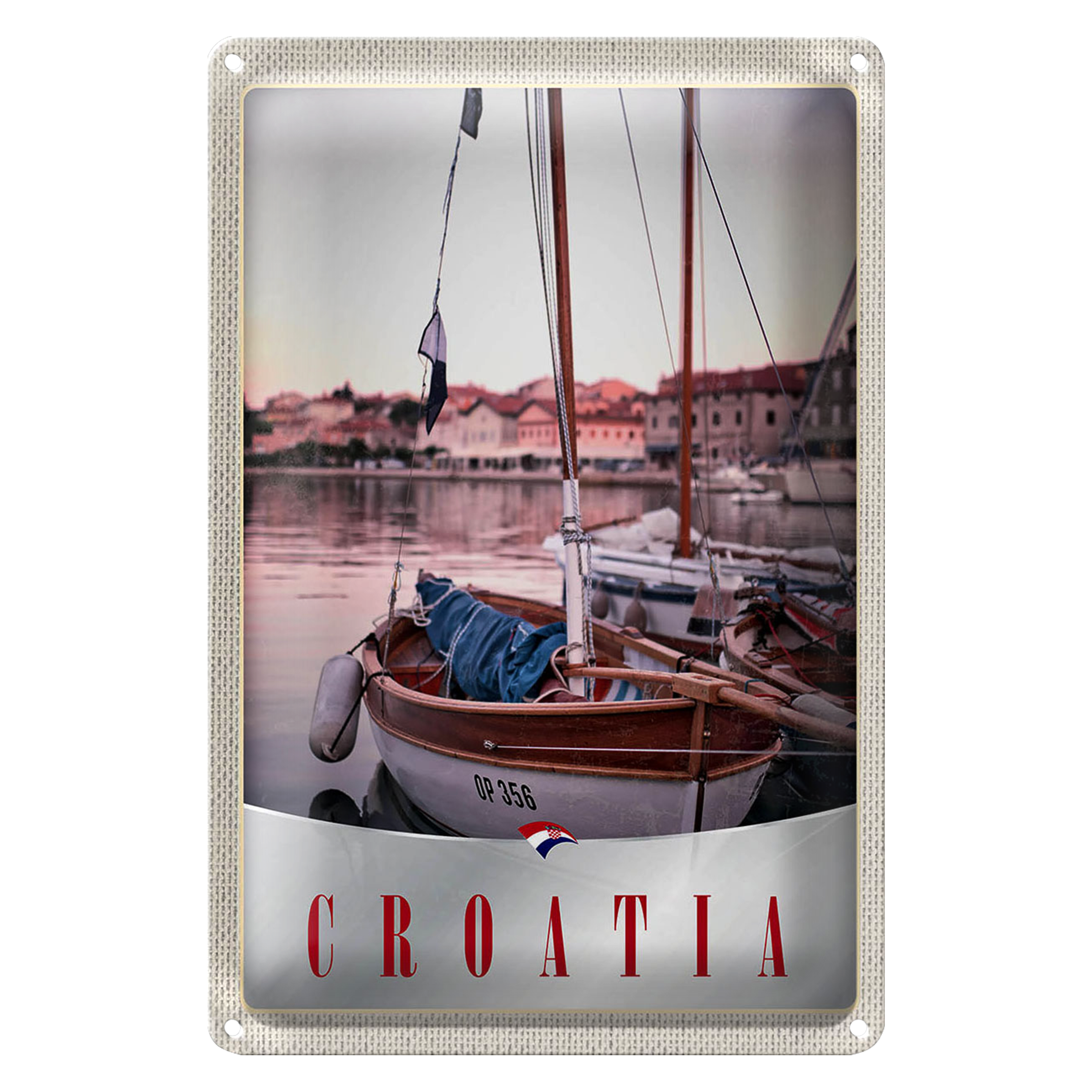 Blechschild Reise 20x30cm Kroatien Boote Stadt Meer Urlaub