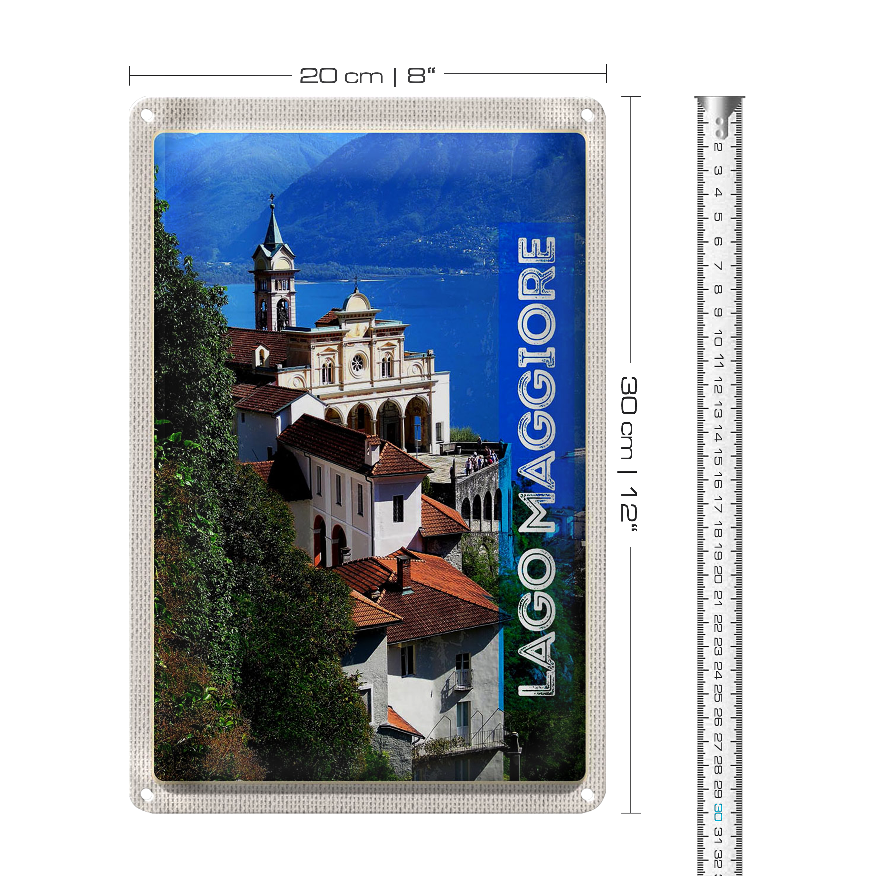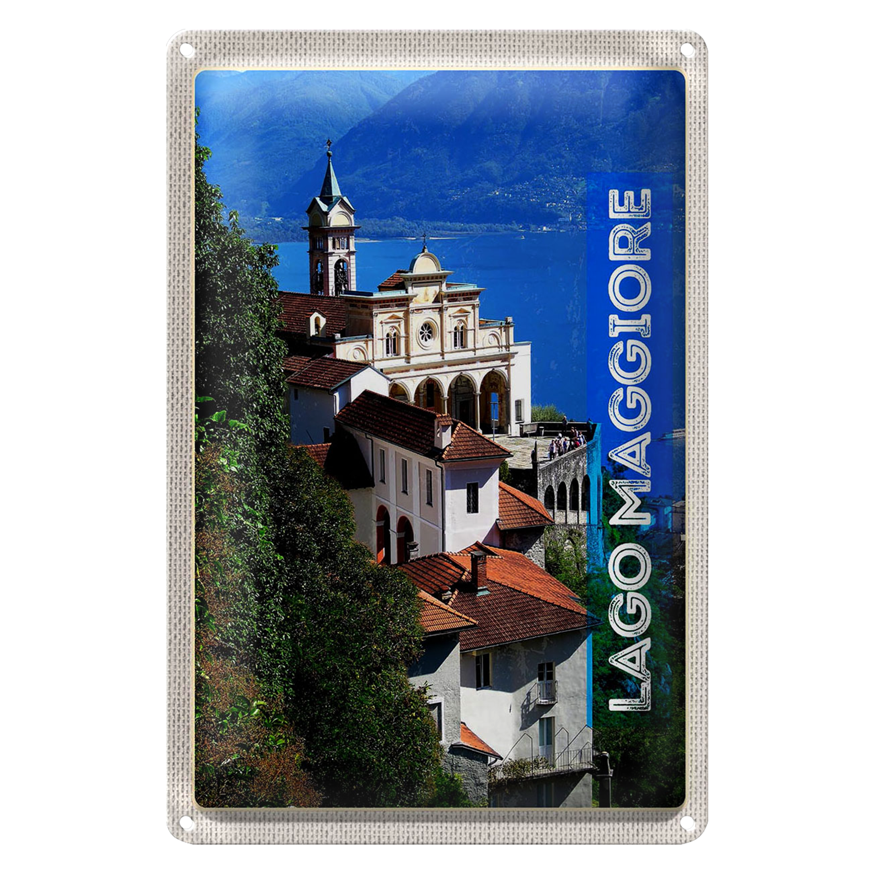 Blechschild Reise 20x30cm Lago Maggiore Aussicht auf Meer Stadt