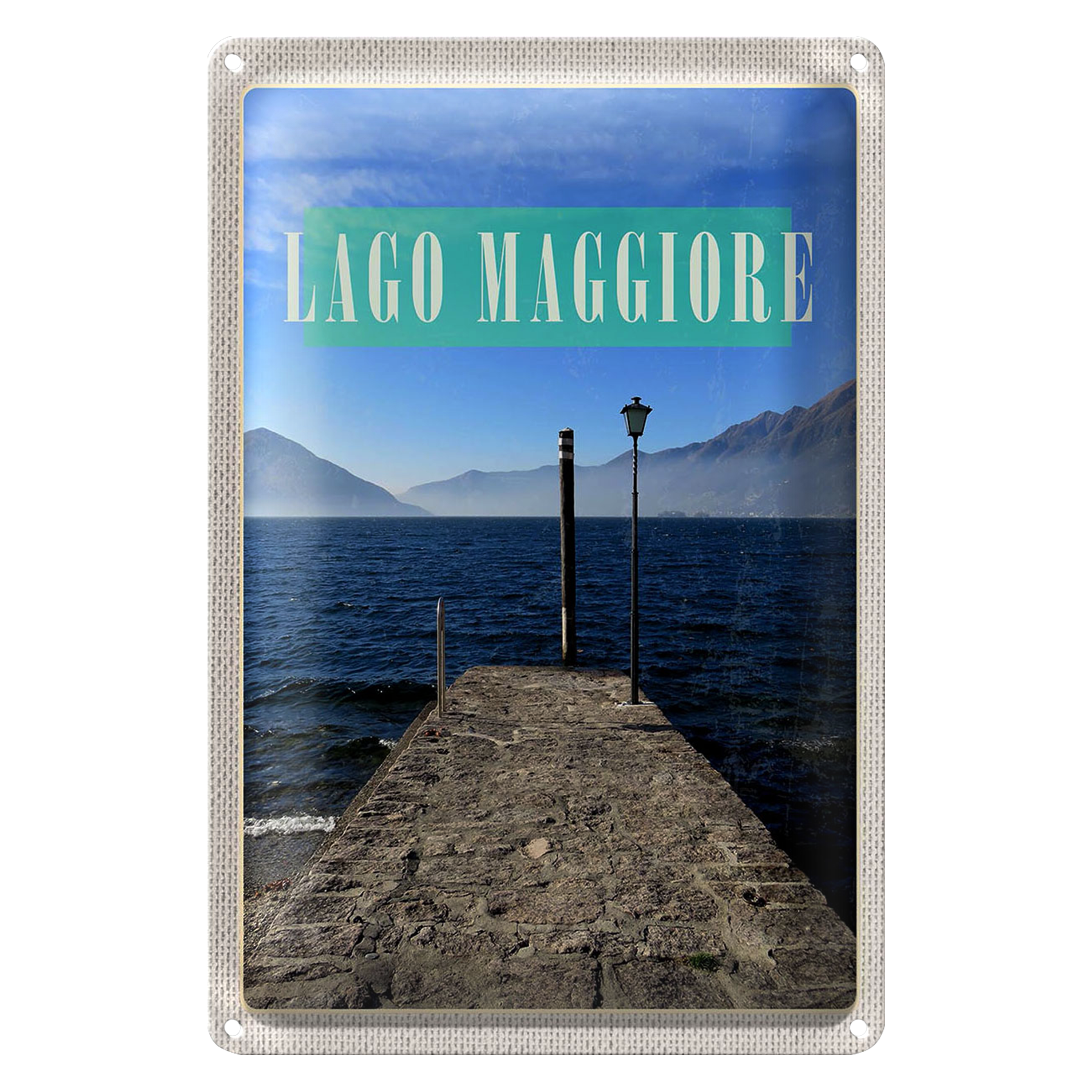 Blechschild Reise 20x30cm Lago Maggiore Insel Meer Gebirge