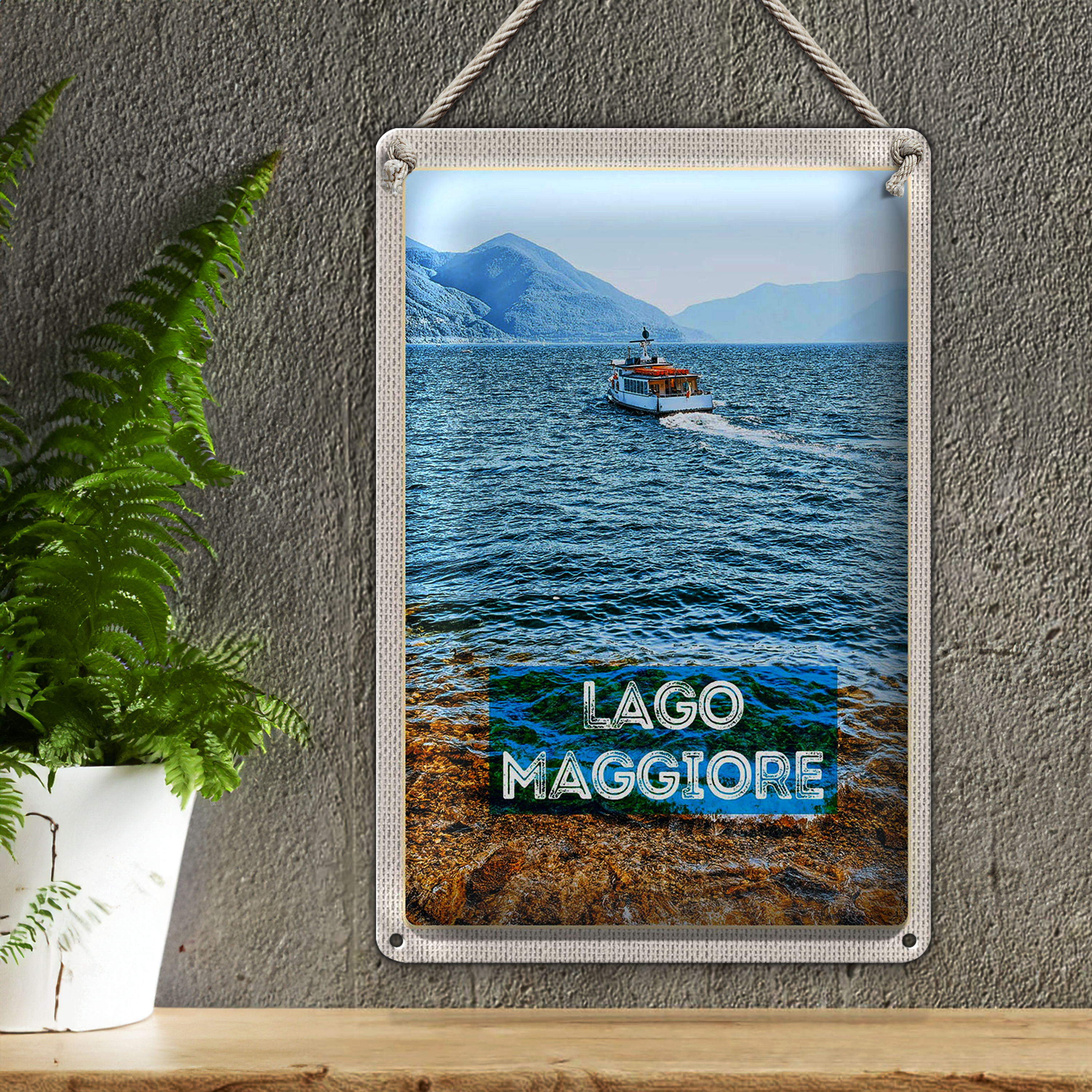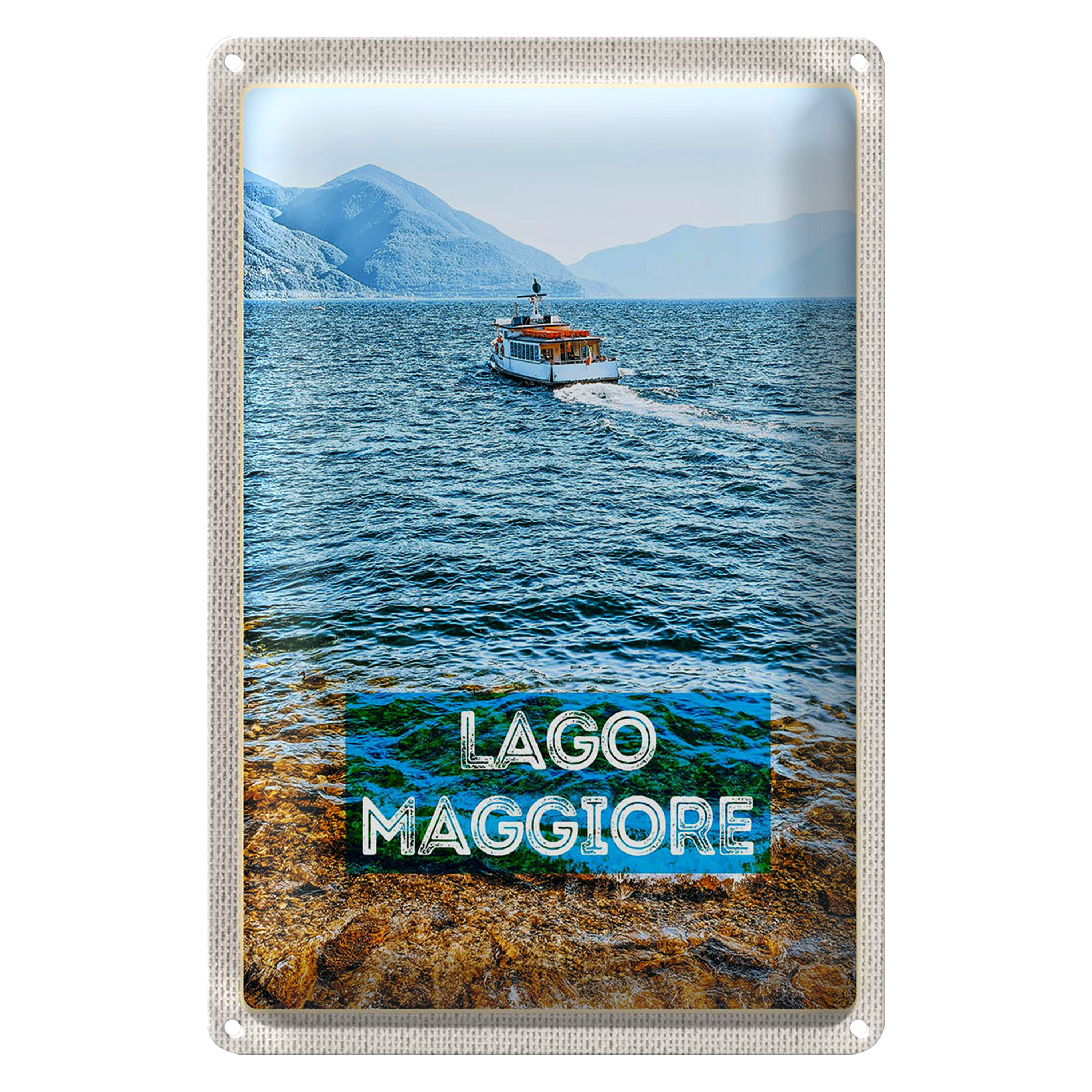 Blechschild Reise 20x30cm Lago Maggiore Italien Insel Boot Meer