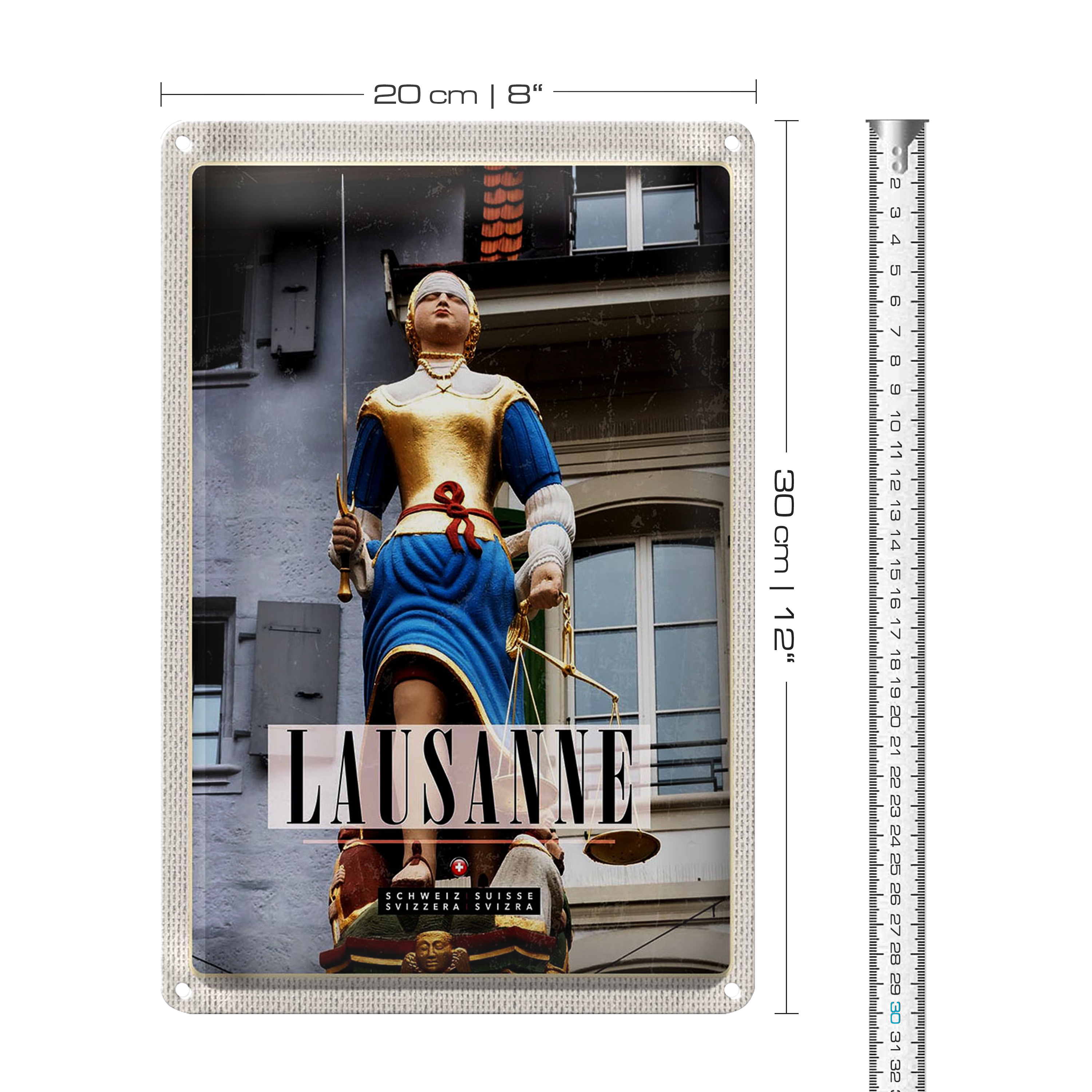 Blechschild Reise 20x30cm Lausanne Schweiz Skulptur Frau Waage