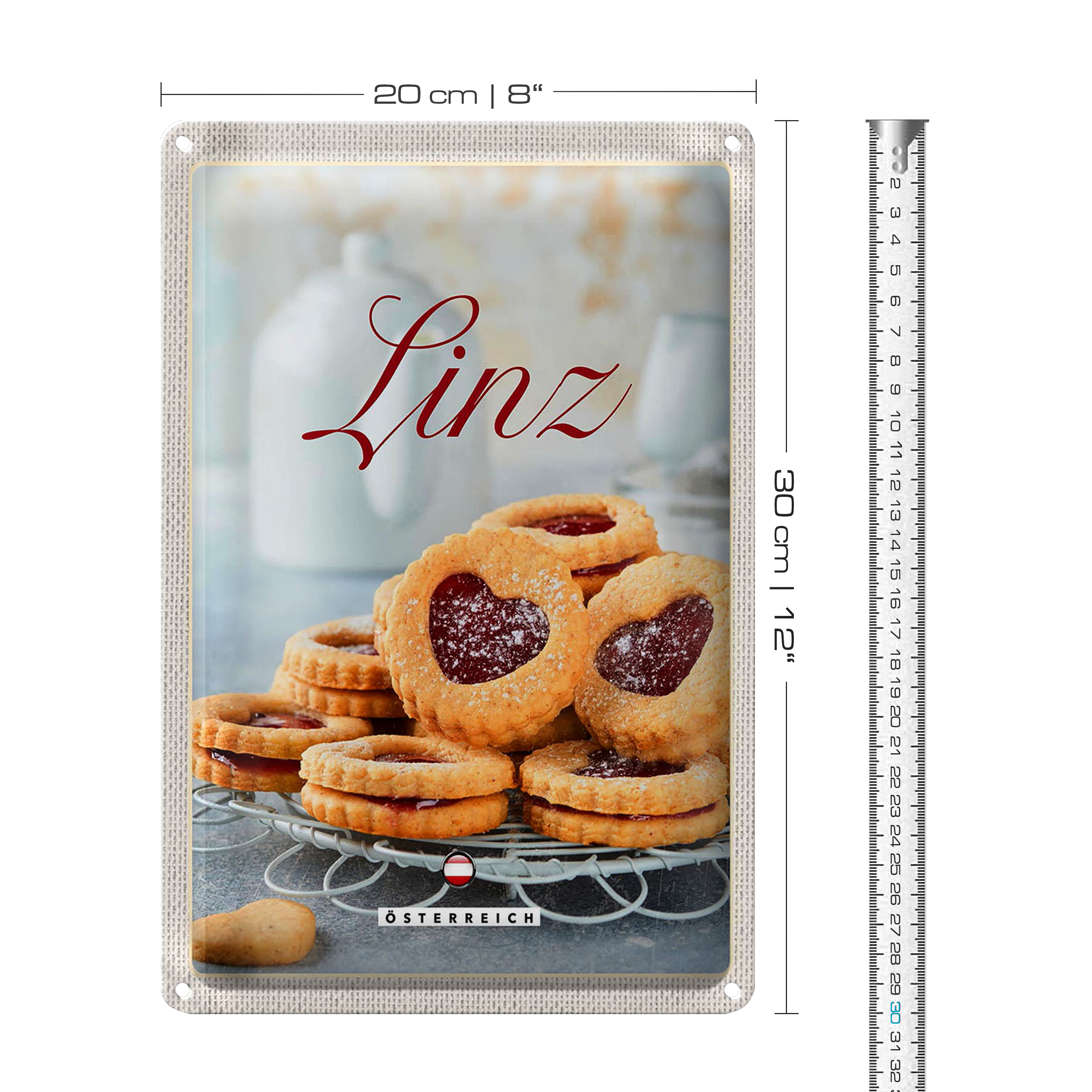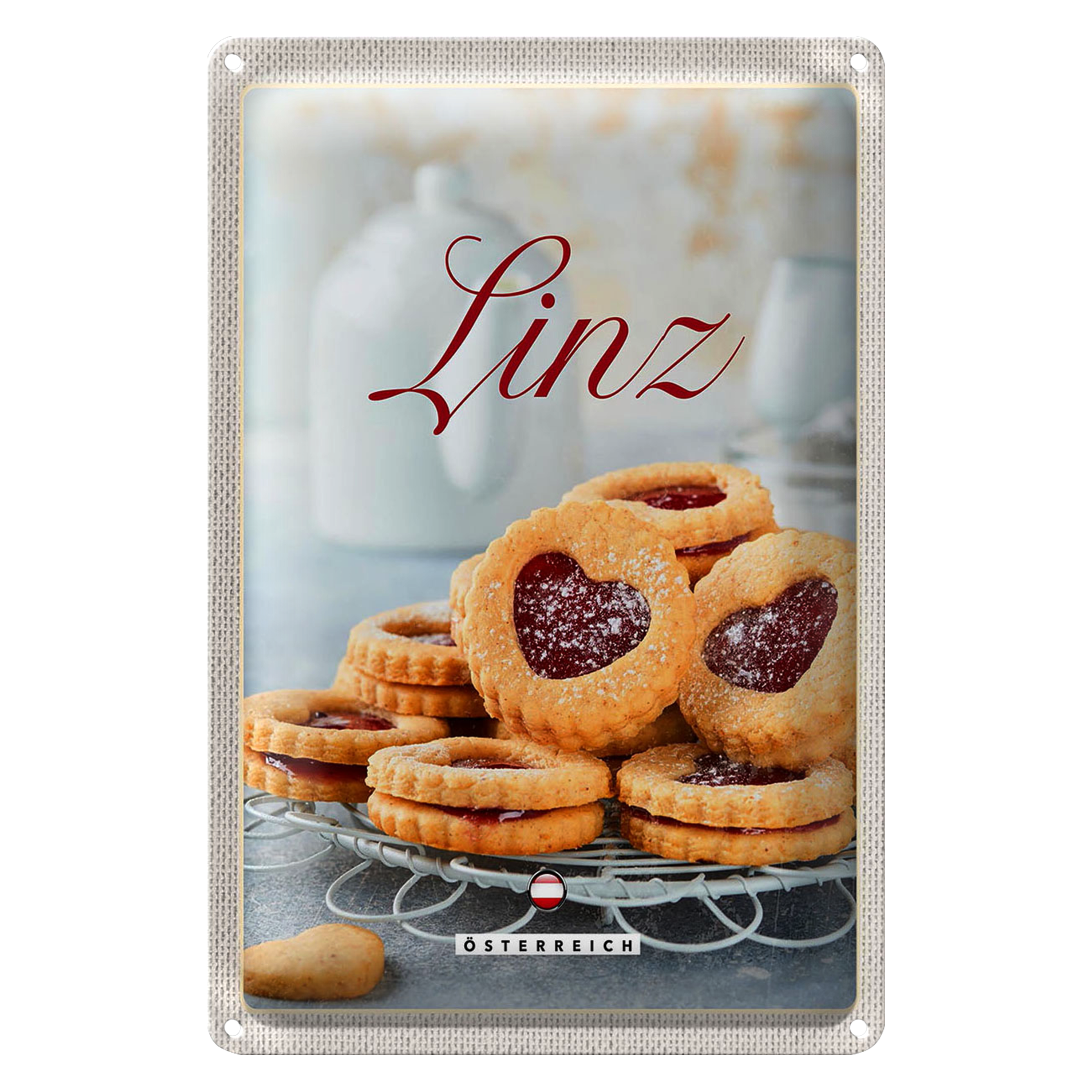 Blechschild Reise 20x30cm Linz Gebäck Plätzchen Erdbeerfüllung