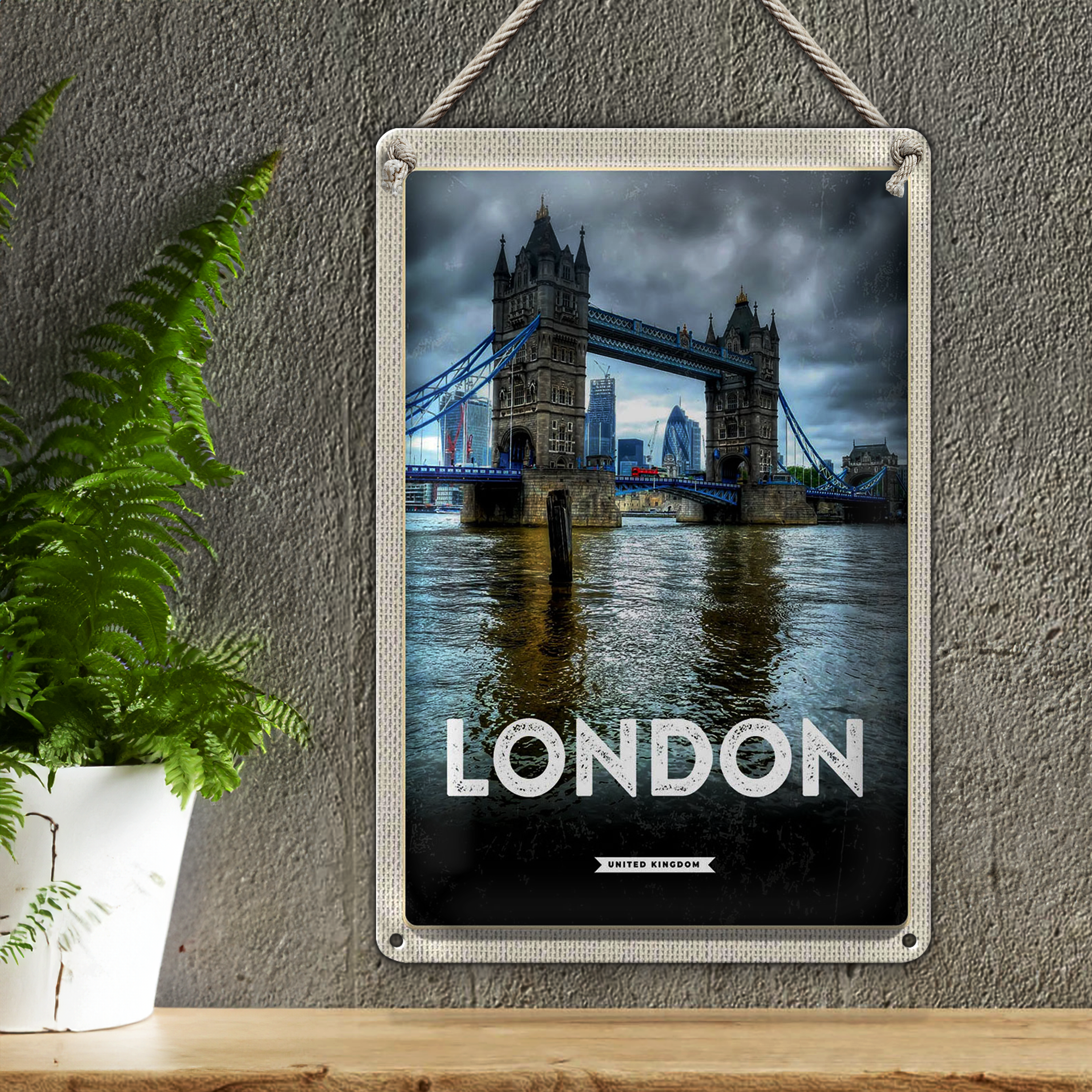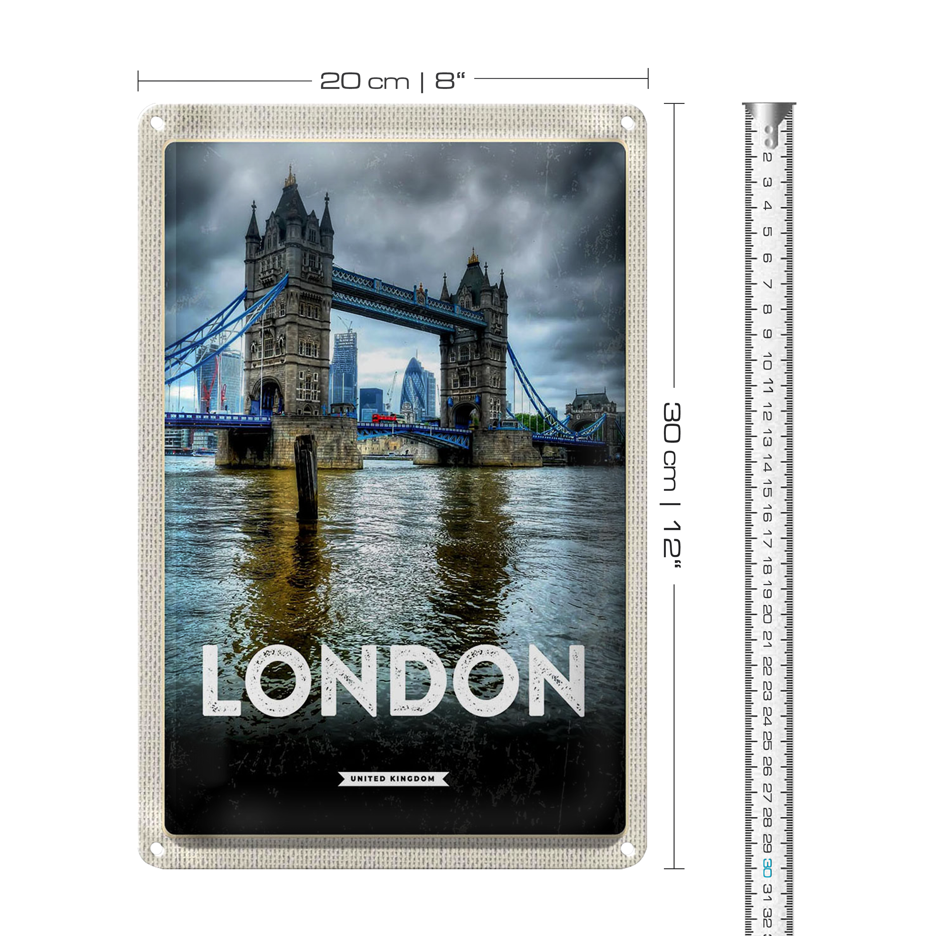 Blechschild Reise 20x30cm London England Reiseziel Brücke