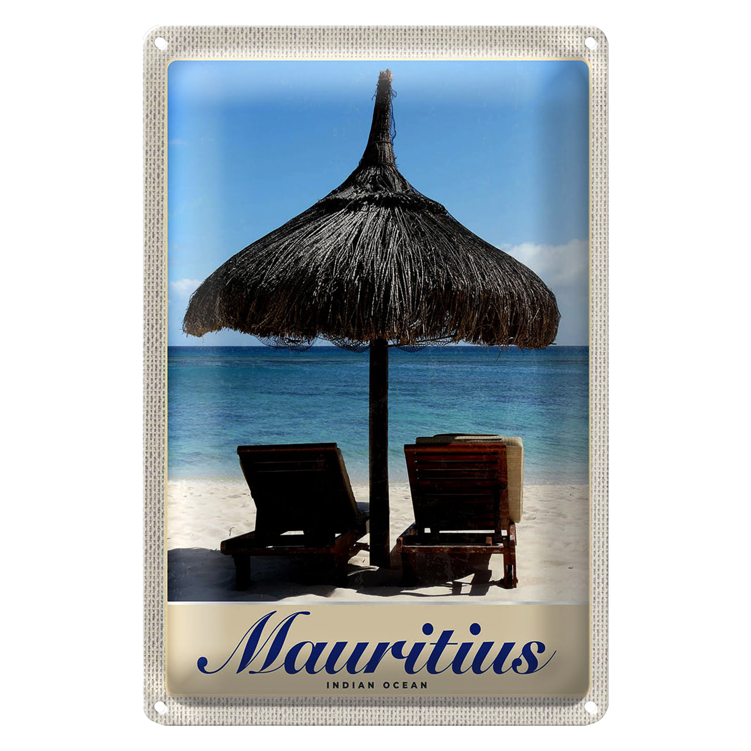 Blechschild Reise 20x30cm Mauritius Indischer Ozean Liege