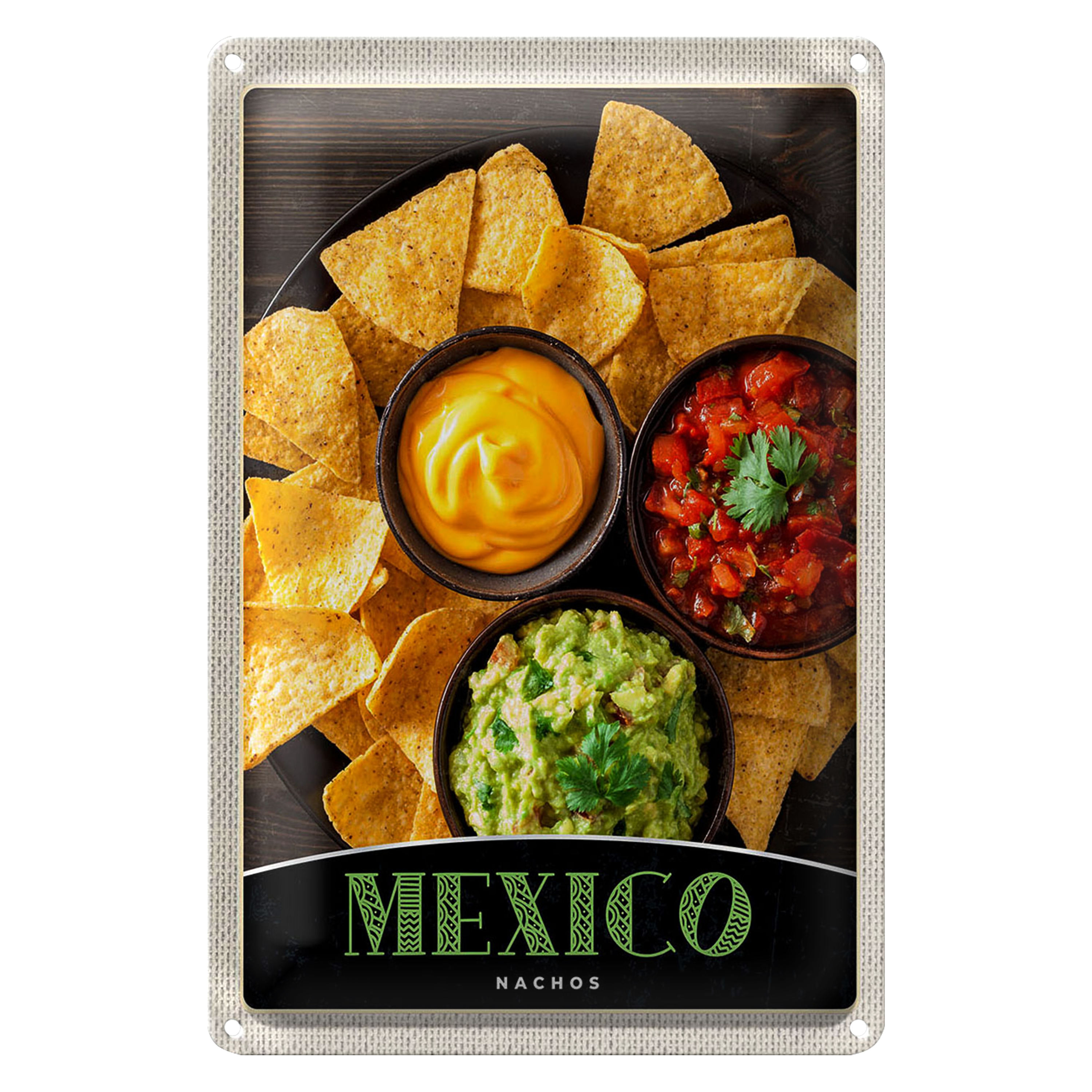 Blechschild Reise 20x30cm Mexiko Nachos Käse scharf Gerichte