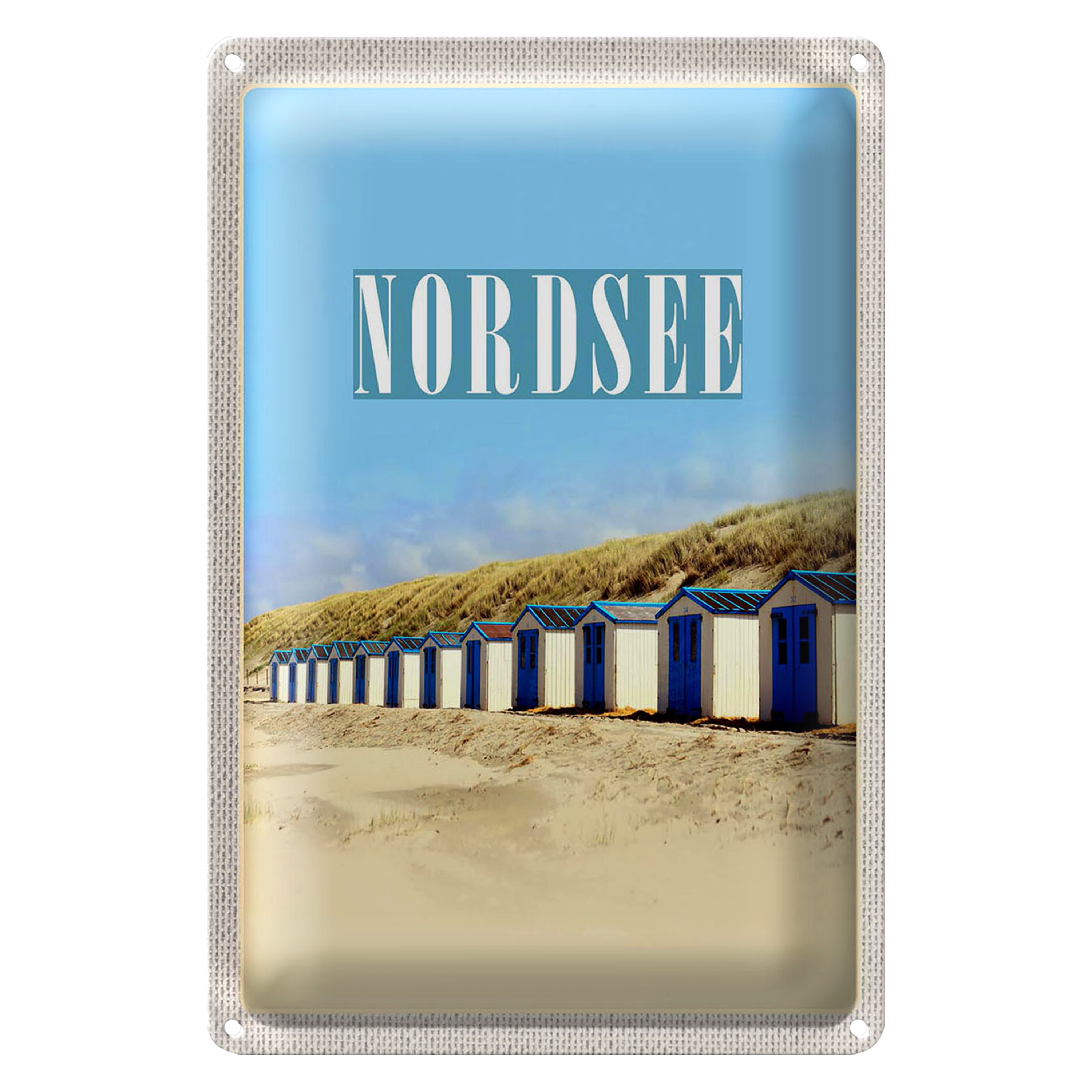 Blechschild Reise 20x30cm Nordsee Strand Stranhäusschen Sonner