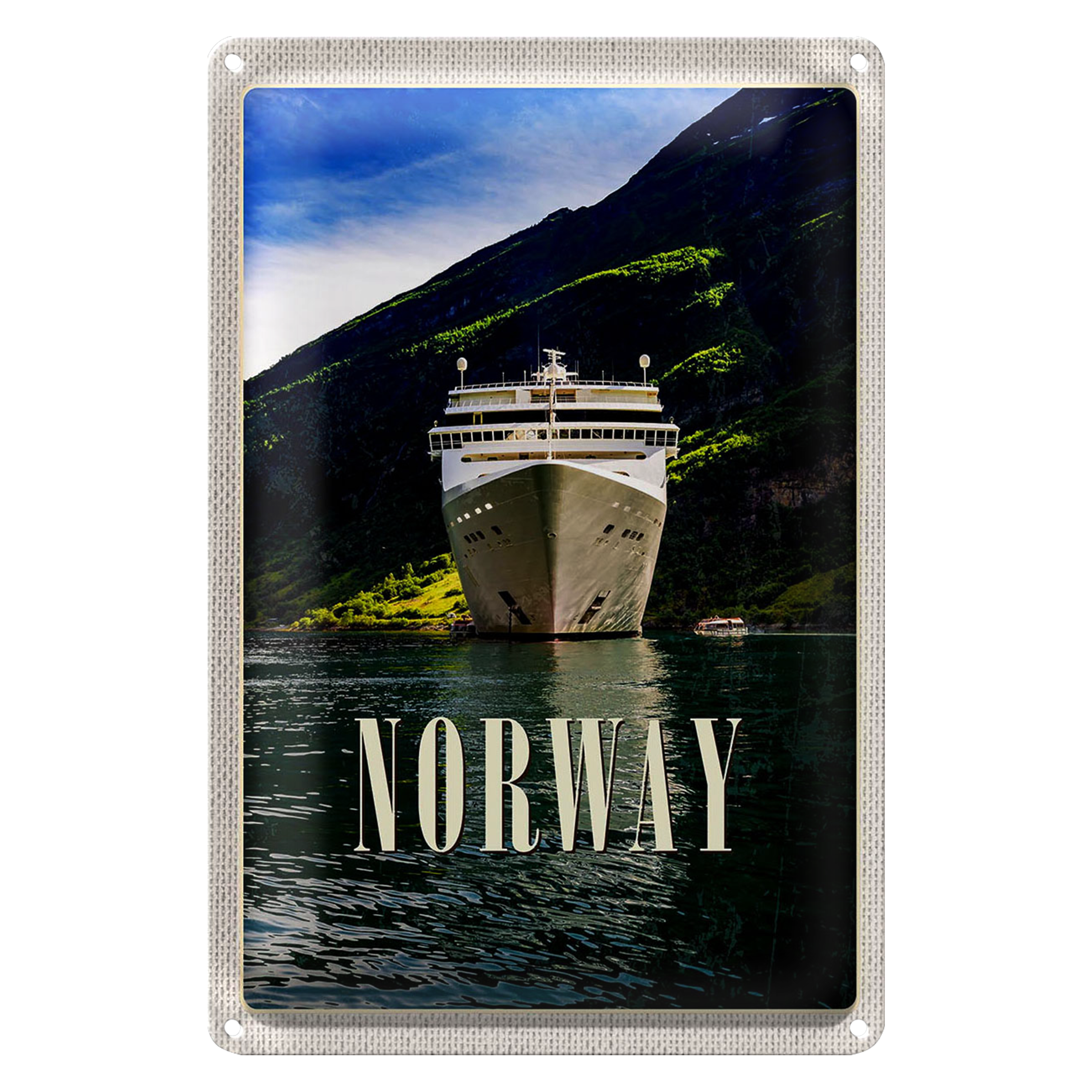 Blechschild Reise 20x30cm Norwegen Yacht Gebirge Meer Natur