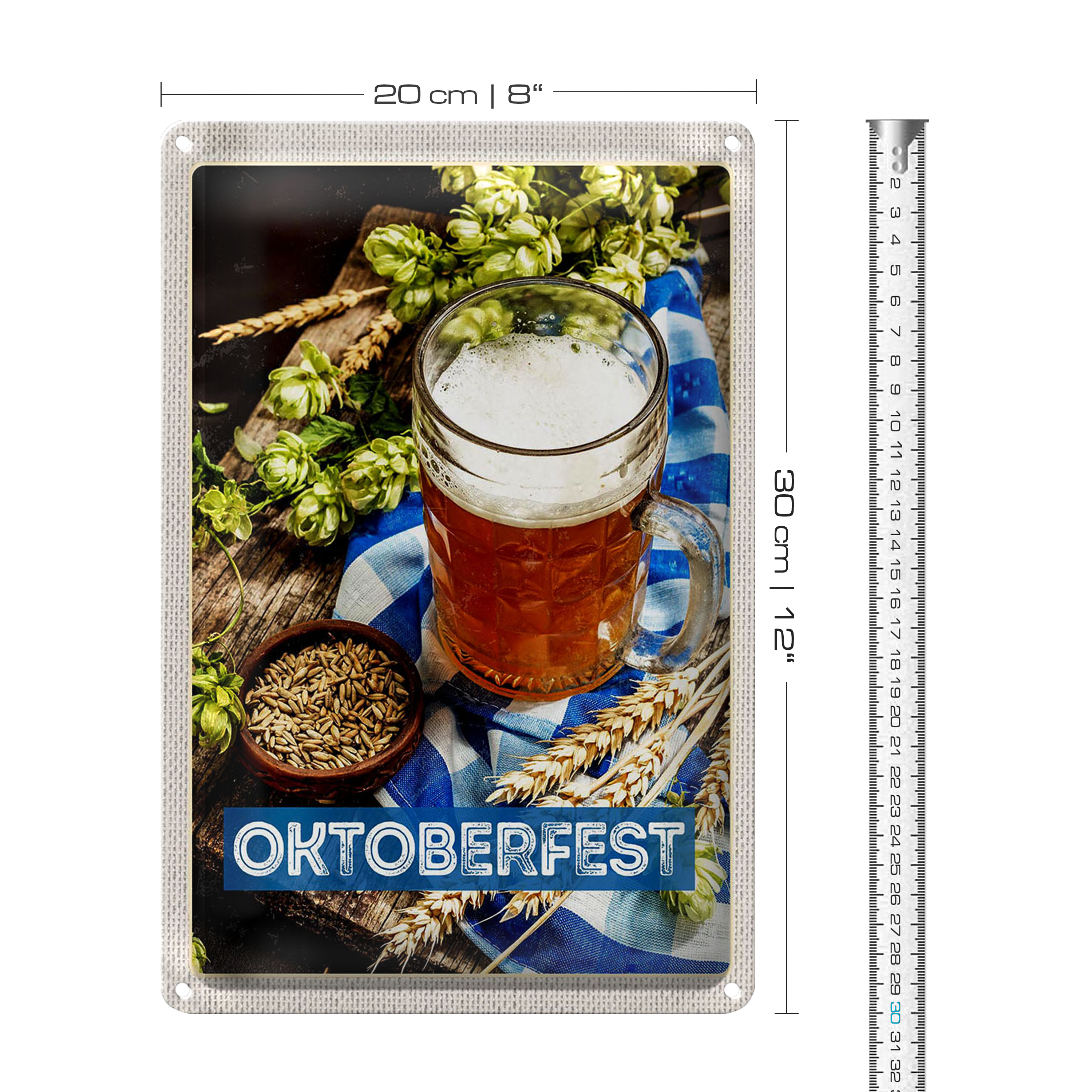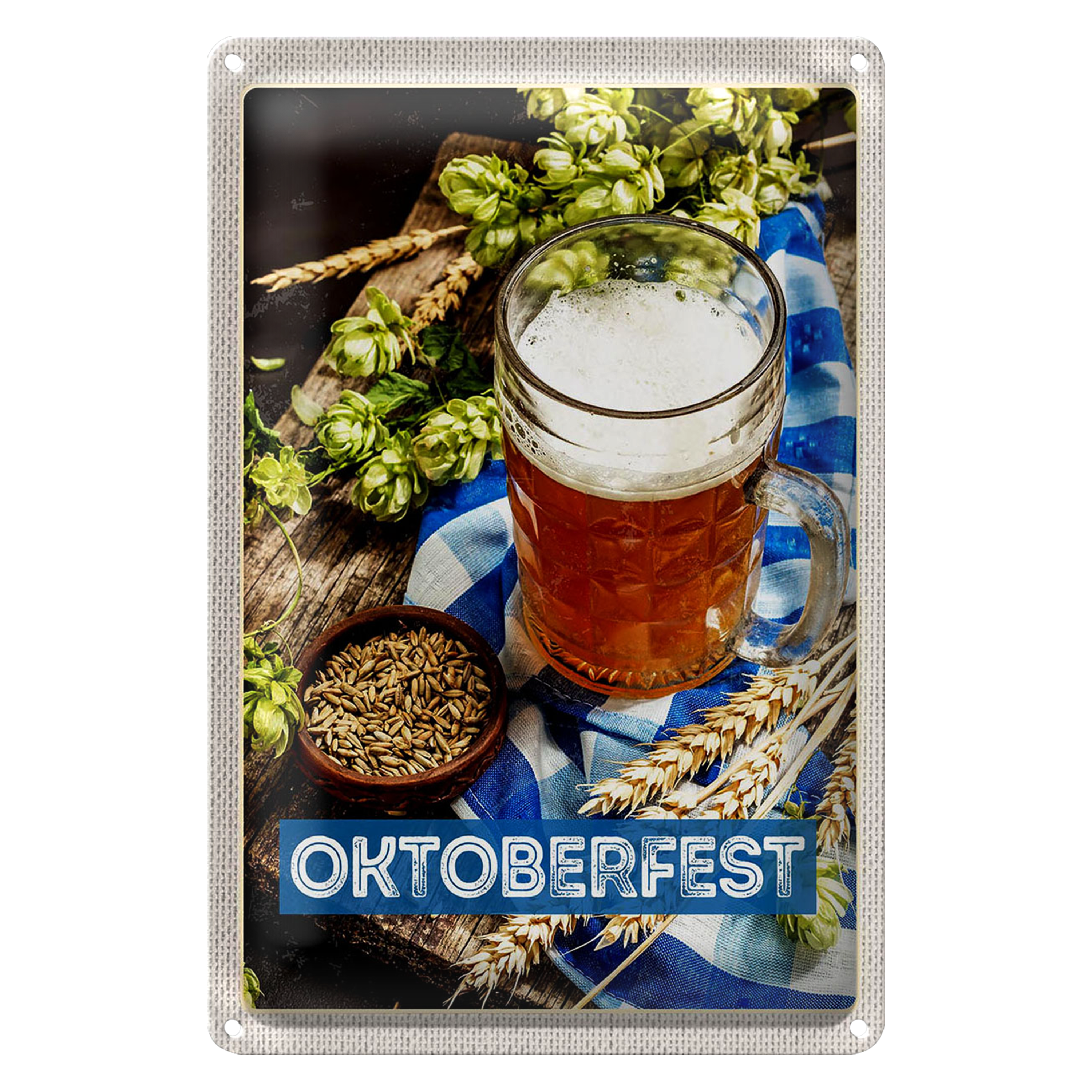 Blechschild Reise 20x30cm Oktoberfesz Bier Glas Weizen Holz