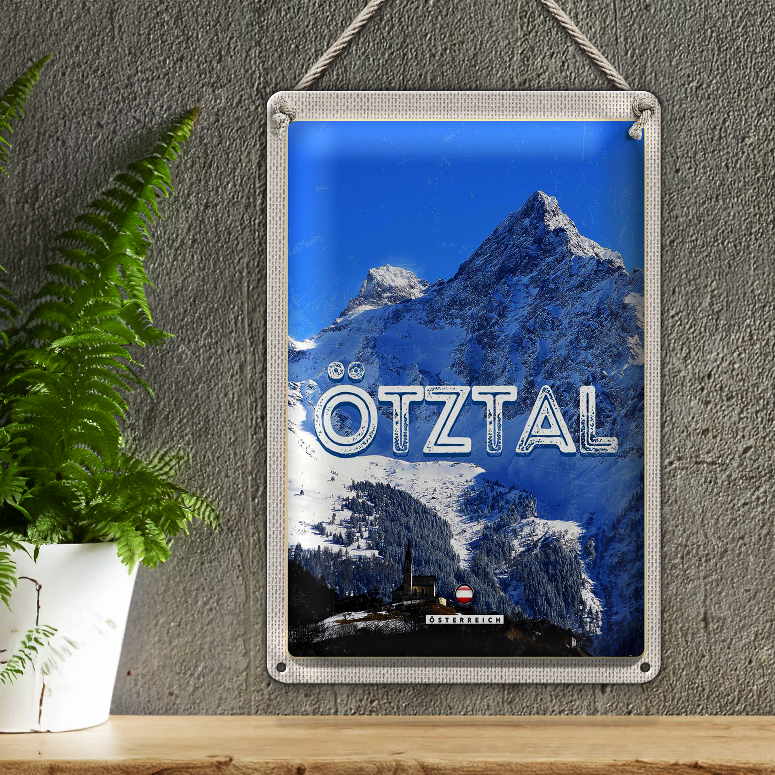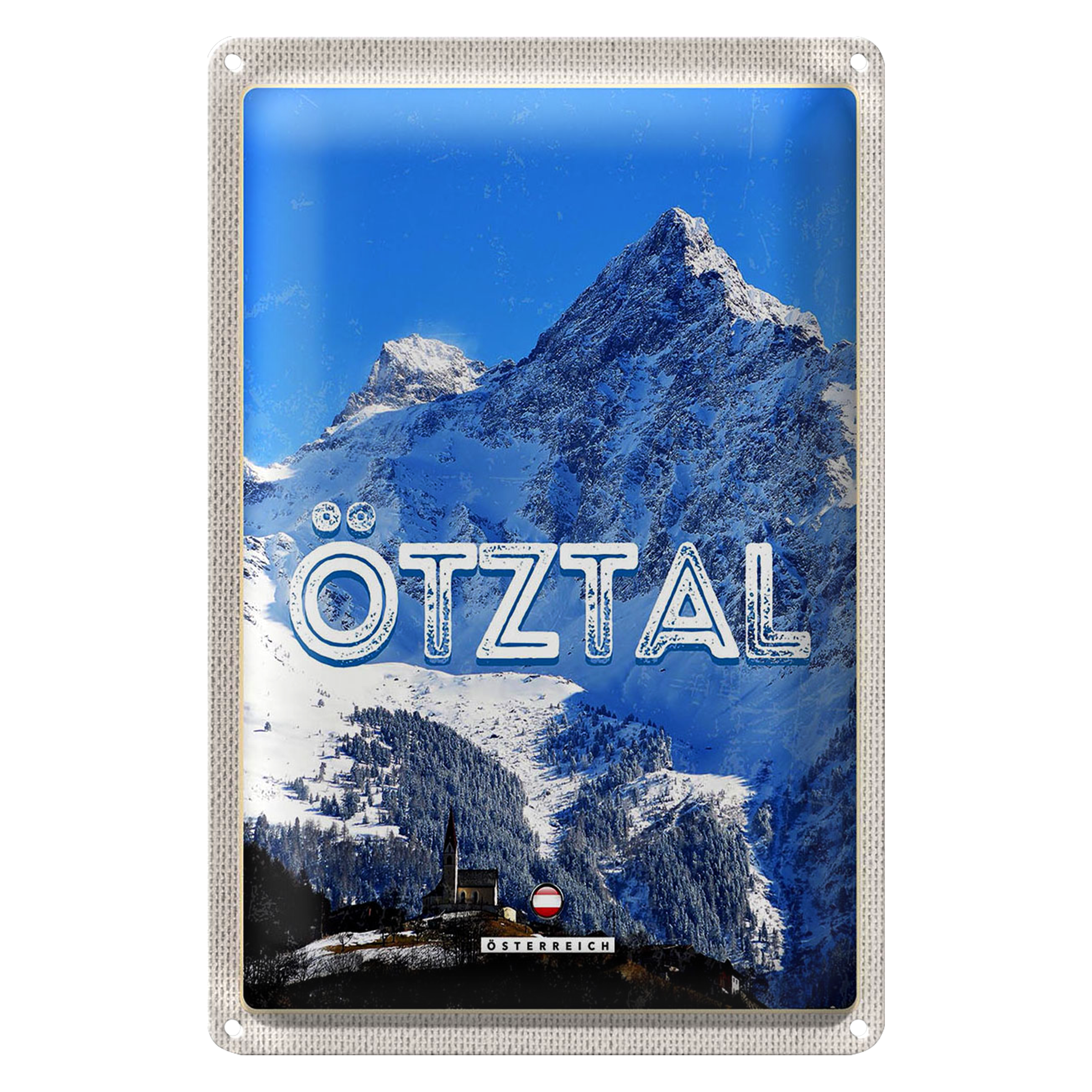 Blechschild Reise 20x30cm Ötztal Österrecih Berg Schnee Winter