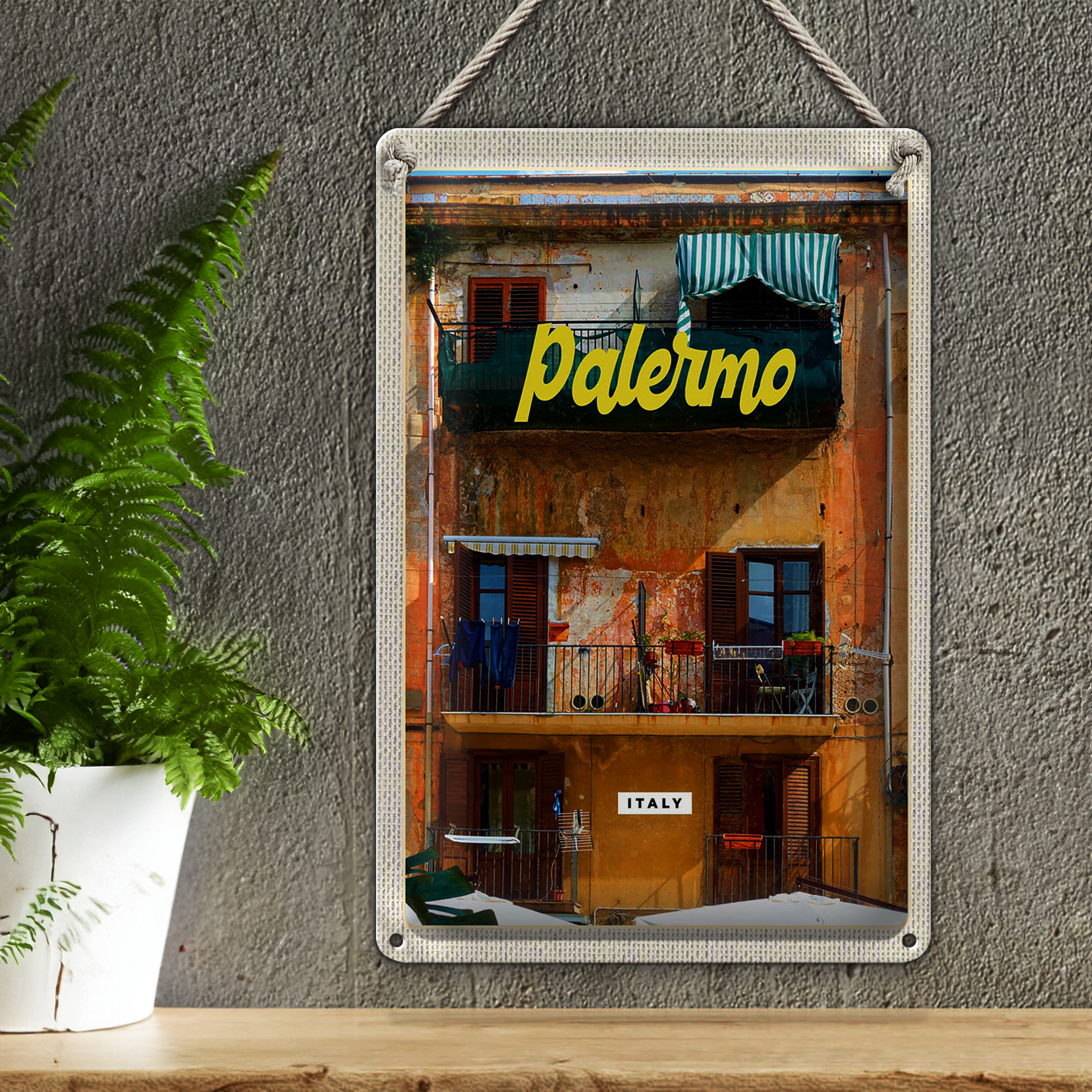 Blechschild Reise 20x30cm Palermo Italien Gebäude Urlaubsort