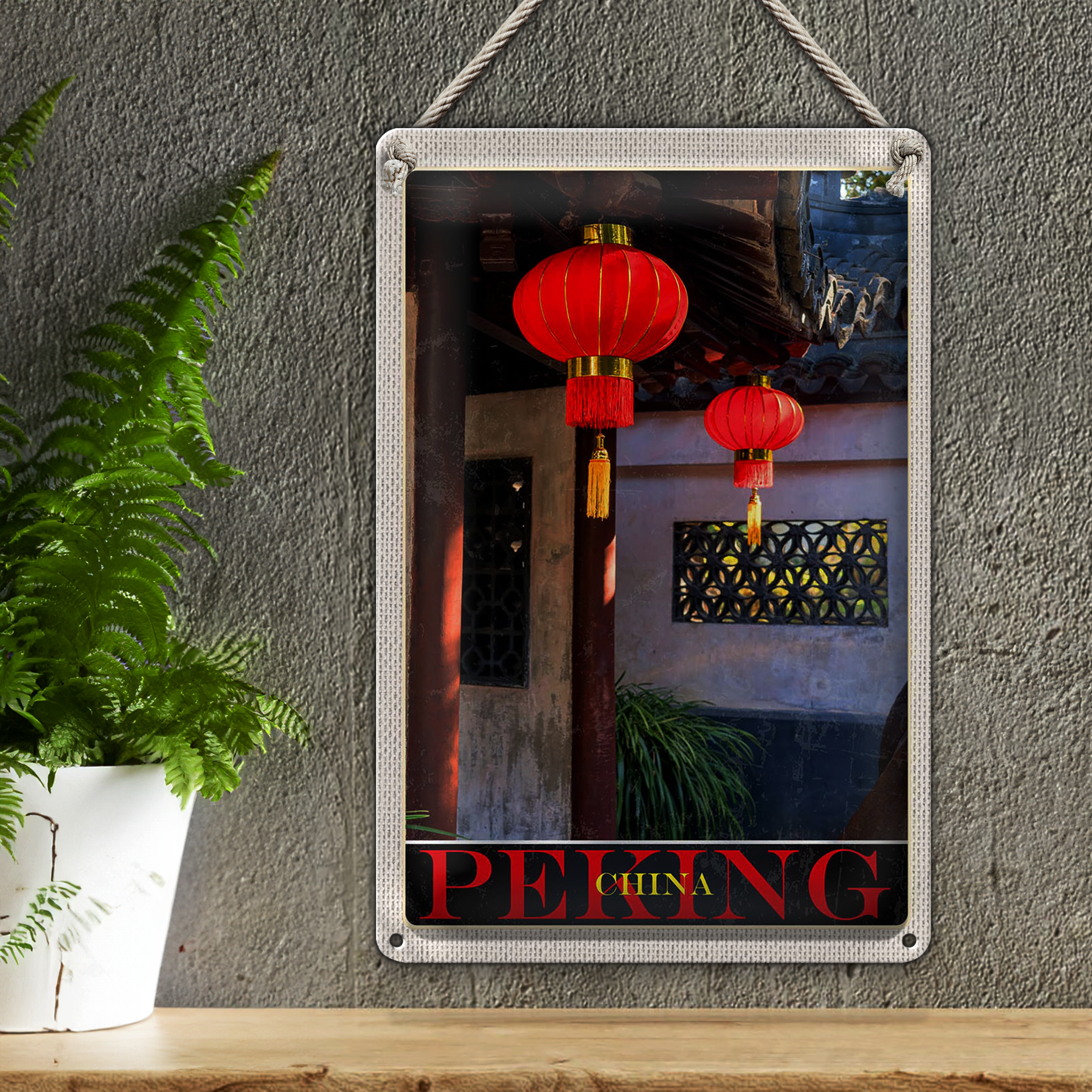 Blechschild Reise 20x30cm Pekimg China Kultur rote Laterne