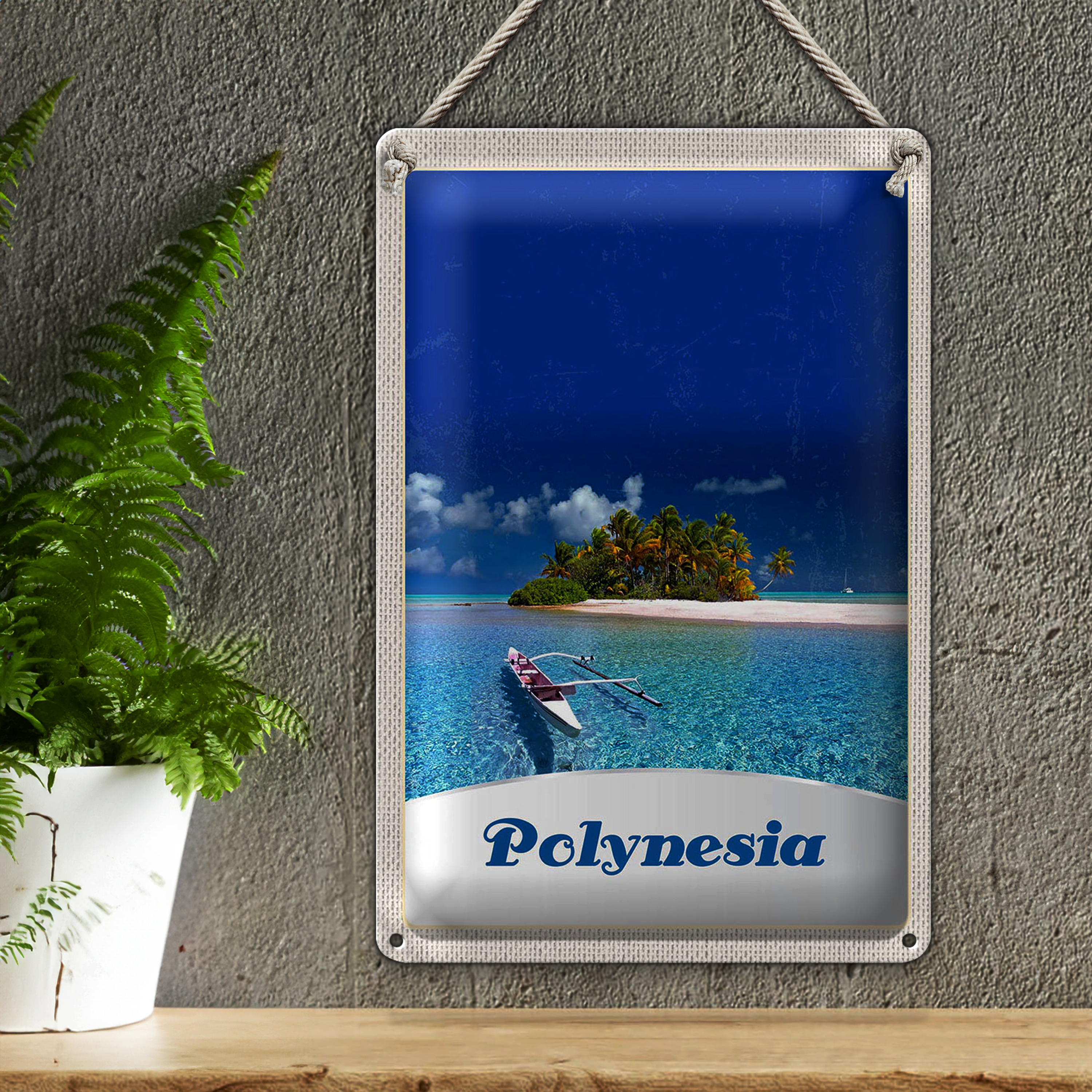 Blechschild Reise 20x30cm Polynesien Trauminsel Australien Boot