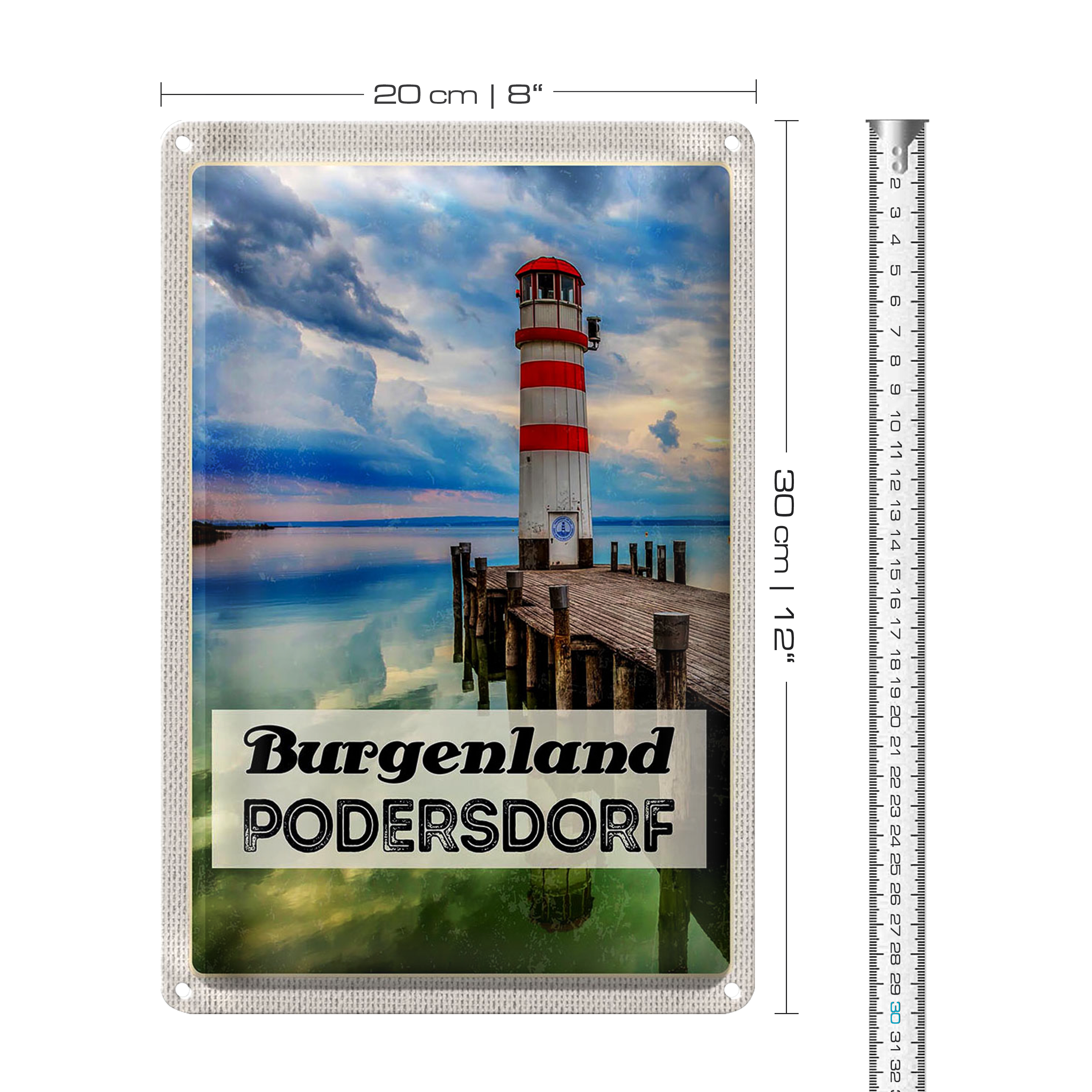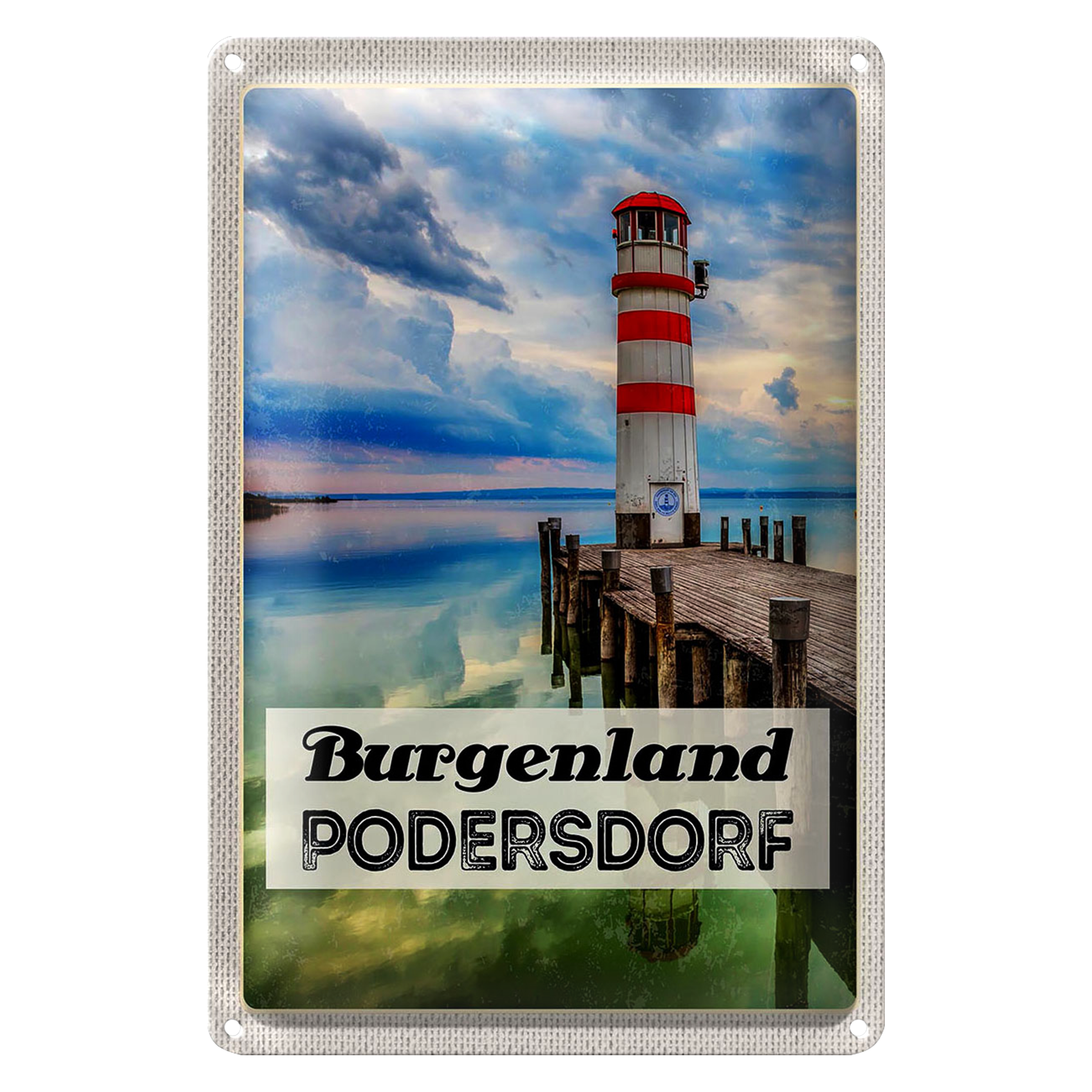 Blechschild Reise 20x30cm Purgenland Podersdorf Leuchtturm Meer