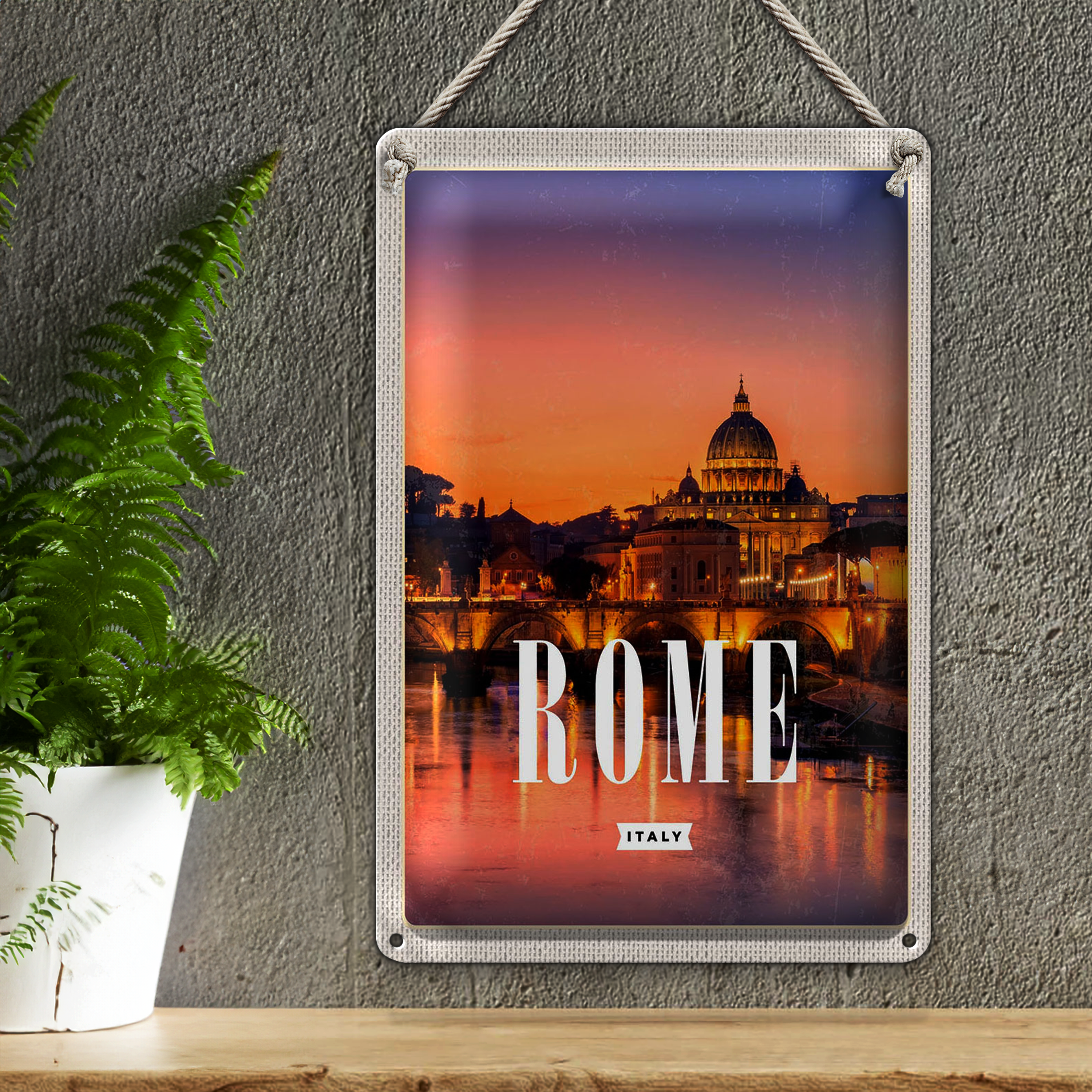 Blechschild Reise 20x30cm Rom Italien Stadt Kathedrale Nacht