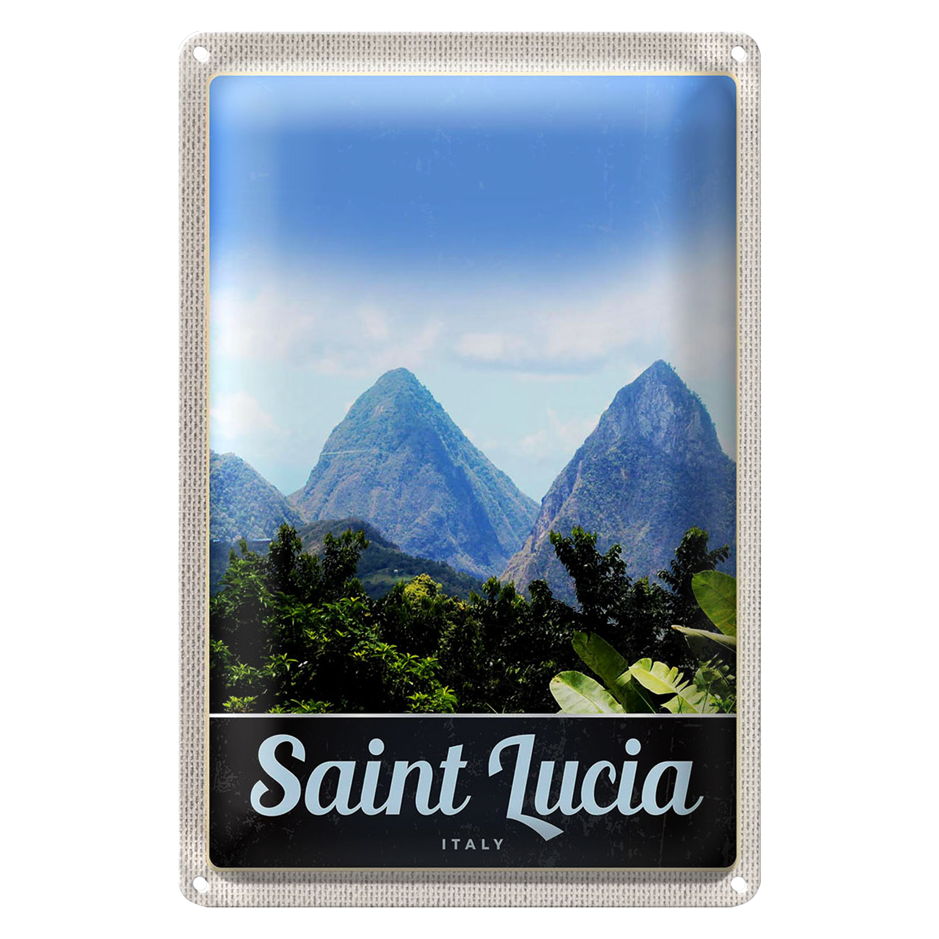 Blechschild Reise 20x30cm Saint Lucia Italien Gebirge Natur